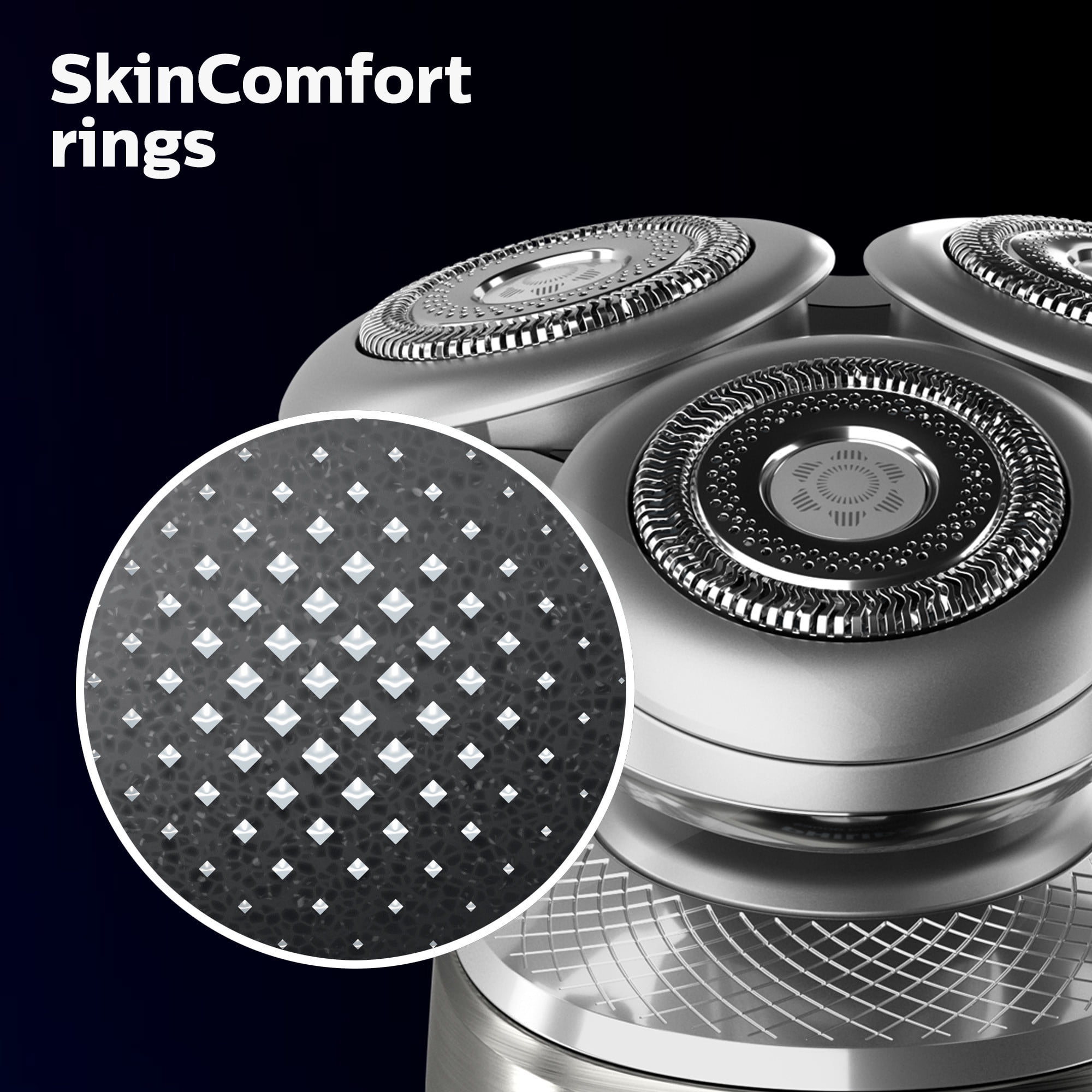 Philips Norelco S9000 Prestige Rechargeable Wet & Dry Shaver with Precision Trimmer and Premium Case, SP9820/87 Experience the world’s closest electric shave with uncompromised skin comfort. Philips Norelco’s Series 9000 Prestige glides smoothly over your skin while cutting each hair exceptionally close in fewer passes resulting in a difference you can feel. Nano Tech precision blades are strengthened with thousands of Nano particles that cut hair with the highest precision, delivering an extremely close shave at skin level. Shaving heads are surrounded with Skin Comfort rings, which have a special protective coating so the shaver glides smoothly over your skin. Effortlessly shave off even a dense beard. The Beard Adapt Sensor checks hair density 15 times per second and automatically adapts the shaver to your hair. The rechargeable Lithium-ion battery delivers the power of a corded shaver without the hassle of a cord. 60 minutes of shaving time, with a premium LED numeric display