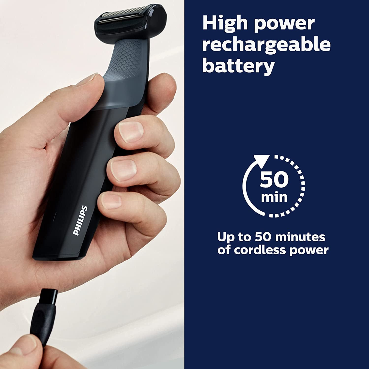 Shave or trim any area on your body, including hard to reach areas like your back, shoulders, chest, abs, underarms, arms, groin area and legs using the extra long attachment. The best Philips Norelco shaver for men. The men’s body groomer designed to capture short, long and thick hair in a single stroke. The shaver head features patented rounded tips and a hypo-allergenic foil to protect your skin from cuts and nicks. Wet or Dry- Your wet and dry body groomer is 100% water resistant. The body hair trimmer for men is specifically showerproof designed with an ergonomic rubber grip for better control when wet. Easy to clean- The Philips body trimmer for men is easy to maintain by running the detachable blade cartridge under water for a quick rinse. Powered by Rechargeable battery that allows for up to 1 hour of run time on only a 1 hour charge. 2D contour following with skin protect technology 1 click-on comb, 3mm 50 min cordless use Contour following 2D shaver Back reach attachment Shaving with safety and comfort on your delicate skin – The shaver head features patented rounded tips and a hypo-allergenic foil to protect your skin from cuts and nicks while shaving. Bidirectional trimmer and comb to trims in every direction – Cut hair that grows in any direction using the bidirectional trimmer and 3mm comb. Pre-trimming is recommended for thicker hair. Grooming those hard-to-get places with back attachment – Conveniently remove back hair. This attachment has been specially designed for convenient back grooming. 100% Showerproof body groomer – Your wet and dry body groomer is fully water proof, so you can use it in or out of the shower and clean your groomer easily. For best results, use on dry hair before showering. 50 minutes cordless use – High-power rechargeable battery for full body use, with 50 minutes of cordless use. Ergonomic grip for added grooming control – Your body groomer is easy to hold and maneuver, with a rubber ergonomic grip for more controlled trimming. Body groomer built to last with no oil required – All of our body grooming products are built to last. Accessories: Comb, Back handle attachment Power: Battery type – Ni-MH Charging: 8 hours full charge Run time – 50minutes Handle: Ergonomic grip & handling Shaving element: Foil with two pre-trimmers Skin comfort: Skin protection system, Comfort in sensitive areas Length settings: 1 fixed length setting Wet & Dry