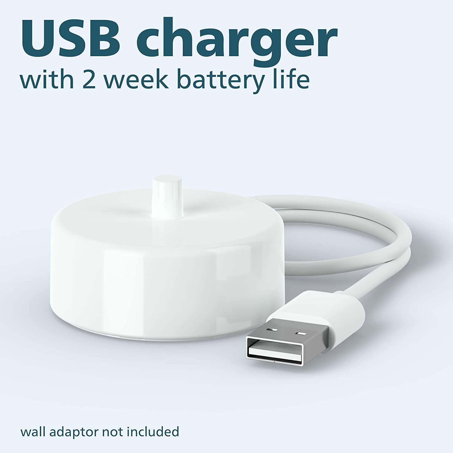 Removes up to 5x more plaque vs. a manual toothbrush Pressure sensor and two intensity settings protect sensitive gums from overbrushing 2 minute SmarTimer with QuadPacer ensure Dentist-recommended brushing time Brush head replacement reminder ensures your brush head is always effective Long battery life with battery light indicator: One charge last for 2 weeks Includes: 1 Philips Sonicare 4100 handle, 1 Optimal Plaque Control (C2) brush head, 1 USB charger (wall adaptor not included)
