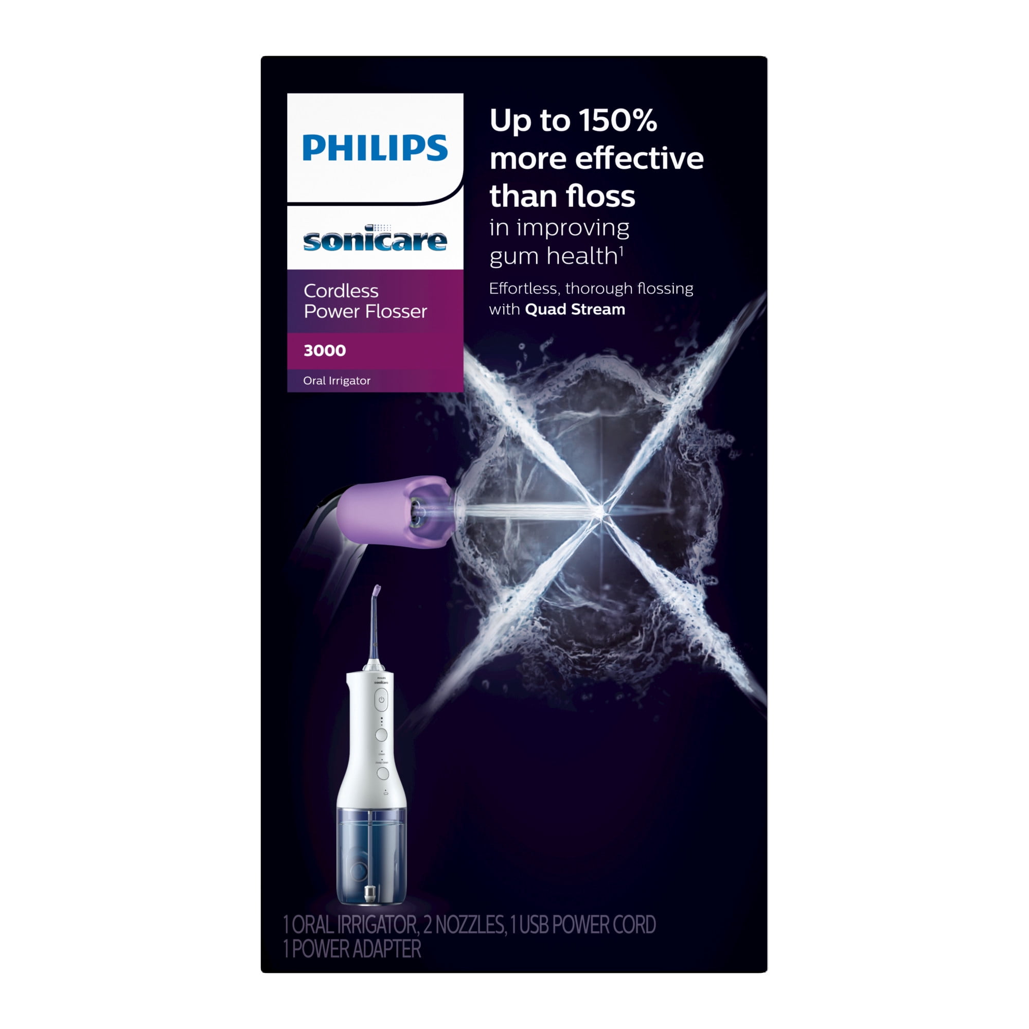 Philips Sonicare Cordless Power Flosser 3000 – Water Flosser with Innovative Quad Stream Technology, Oral Irrigator with 2 Flossing Modes and 3 Pressure Levels, Ipx7 Waterproof, White, HX3826/21