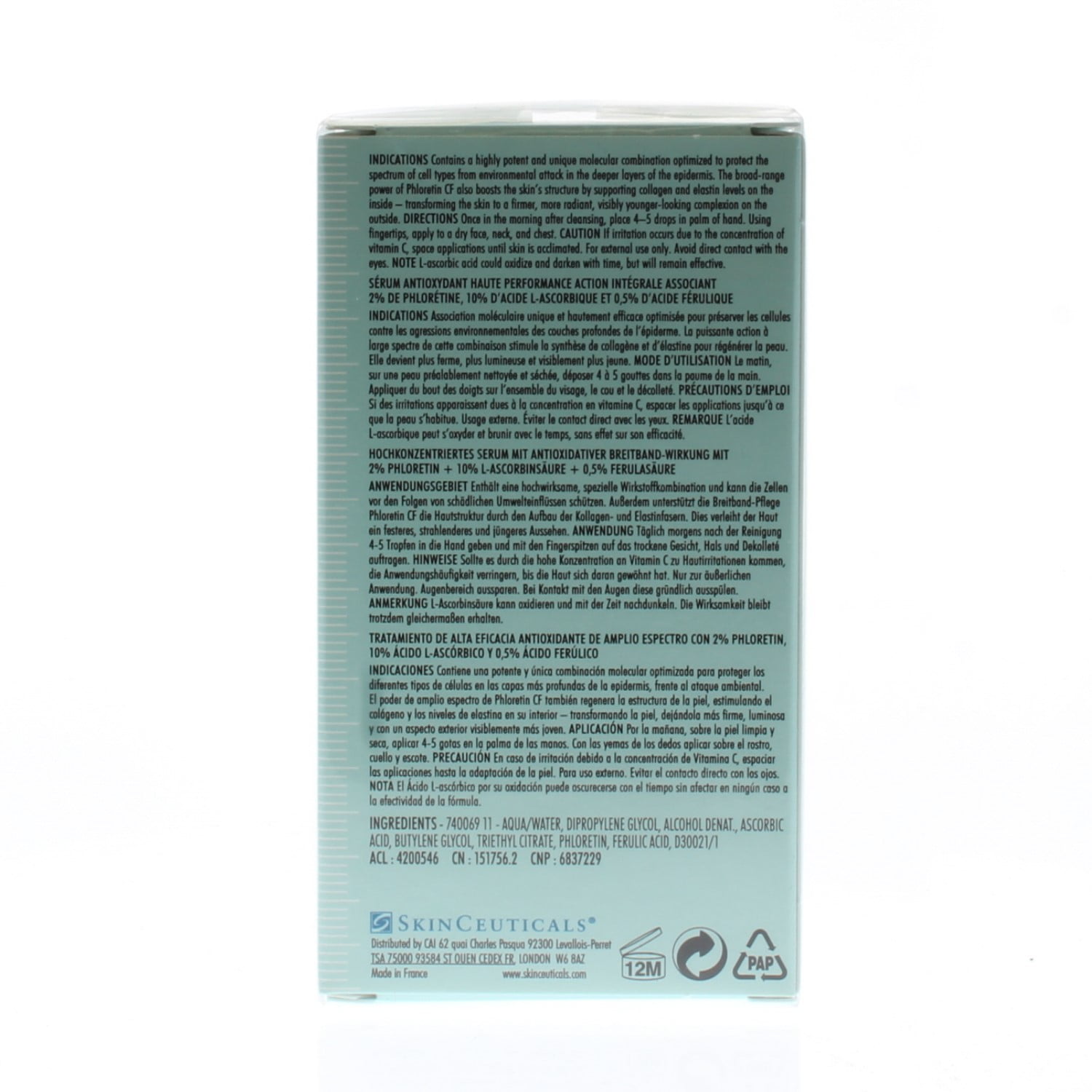 Phloretin CF Serum Antioxidant by SkinCeuticals for Unisex – 1 oz Serum A preventive. corrective. antioxidant treatment. Fights against free radical damage to combat skin aging. Boosts cell renewal to repair existing damage. Strengthens skin support structure inside. Leaves a youthful. firm and radiant appearance.