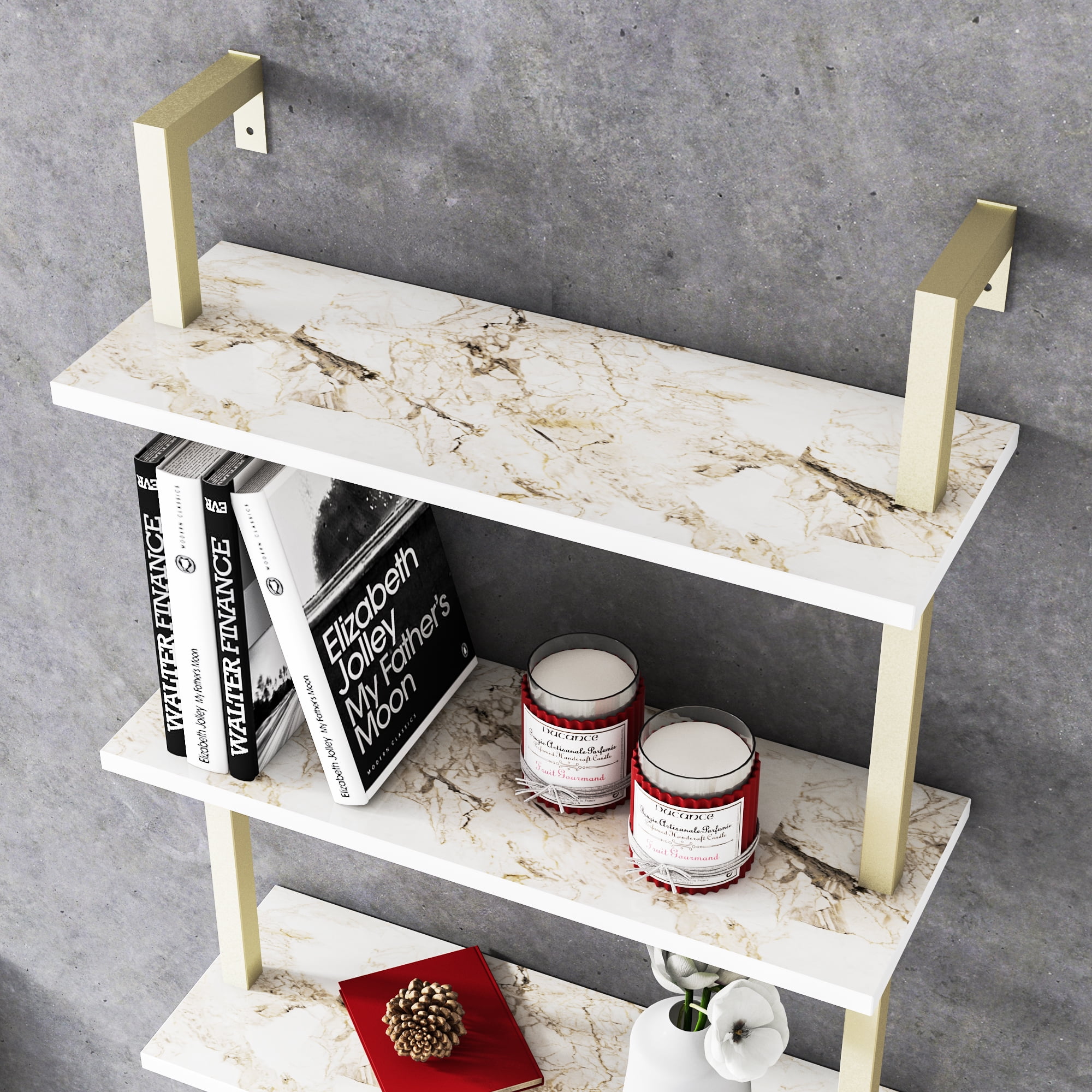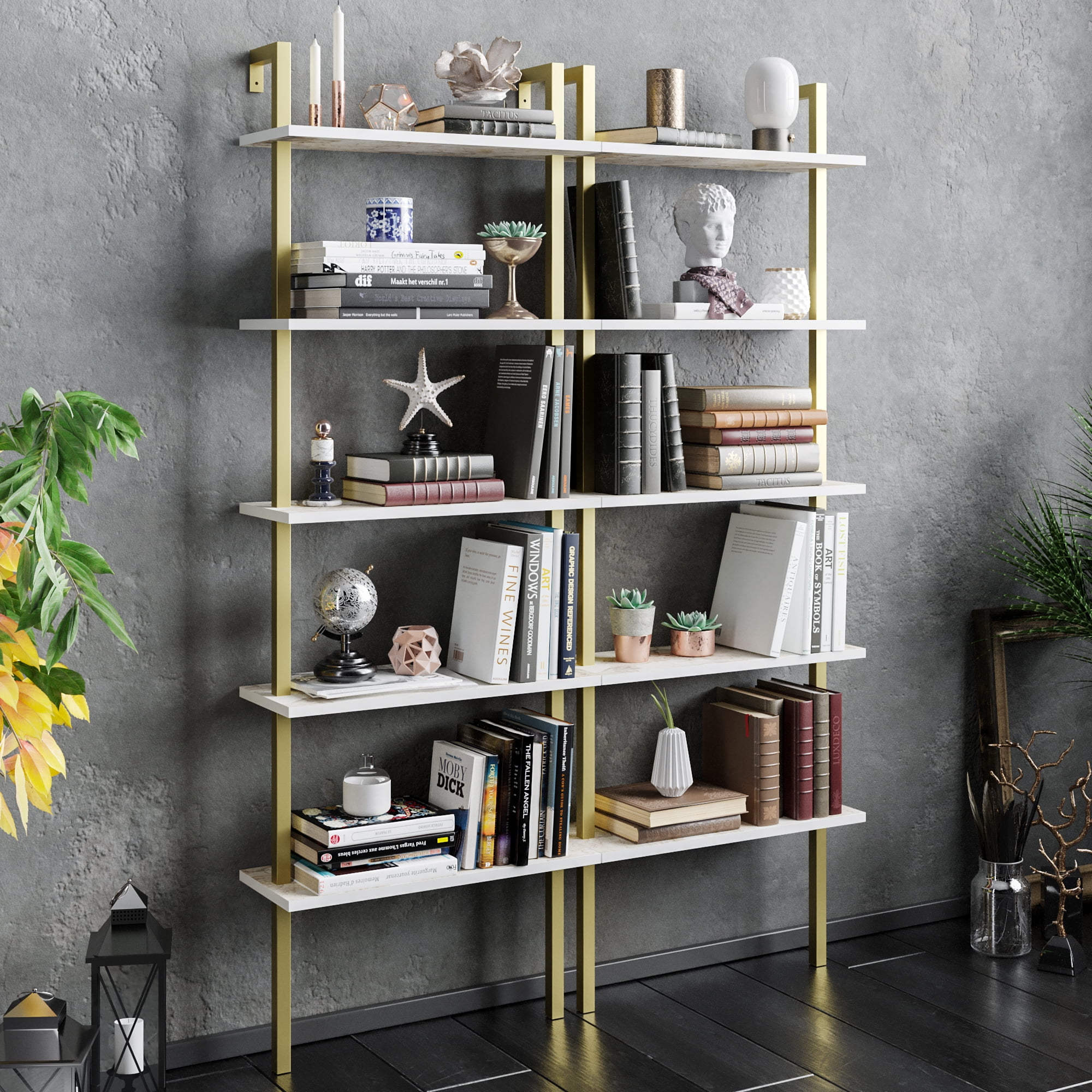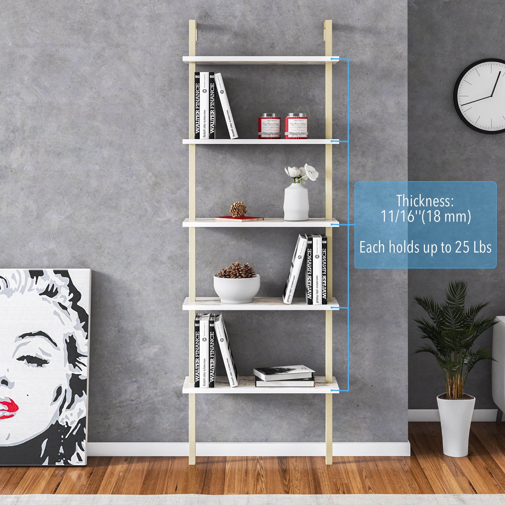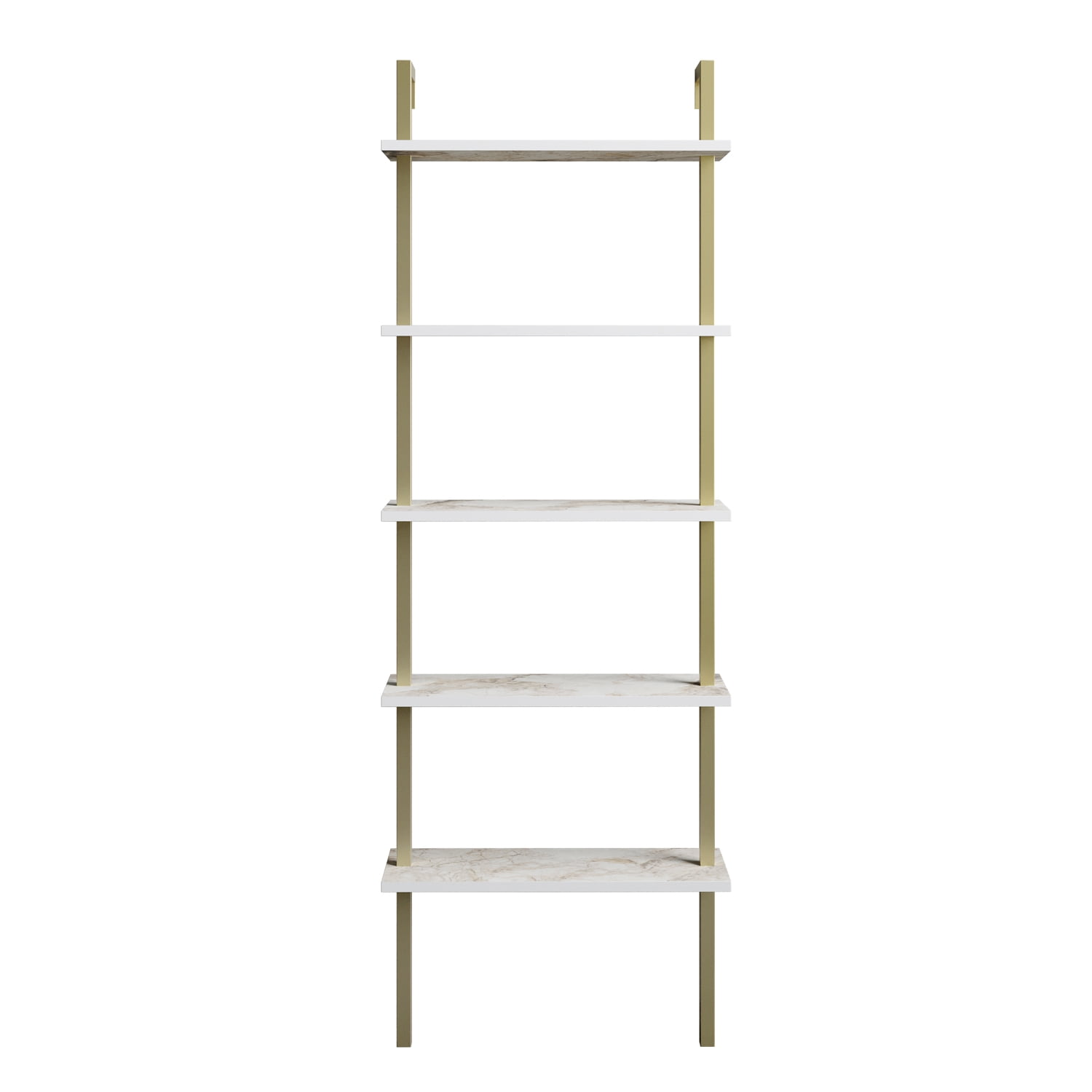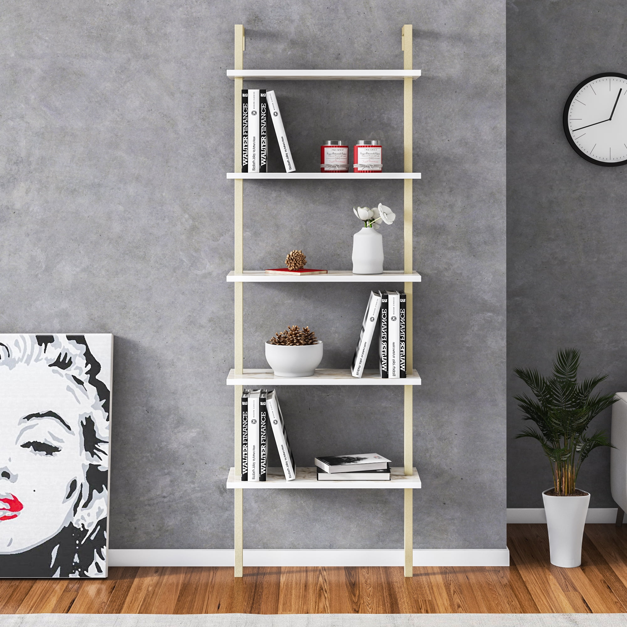 Decorotika Piante 68″ tall modern metal engineered wood ladder bookcase will add a combination of classic-modern style to your study room with its unique design. Wall-mounted interconnected metal frame pieces make it sturdy, elegant, and durable. 5-tier shelves will enable you to display your books just like you want. Thanks to its special design, you may place it in any corner and adjust its positions. It can easily be mounted to the wall (wall-mounting hardware included). It is made of 18 mm thick quality melamine coated particle board and banded with PVC edge banding tape. The bookcase frame is constructed from industrial metal. The metal frame is coated with scratch and impact-resistant industrial static paint. Eco-friendly and health-friendly certified materials. The product will be delivered to the customer in the original package as disassembled. It is designed to be assembled by the customer easily using a power drill.
