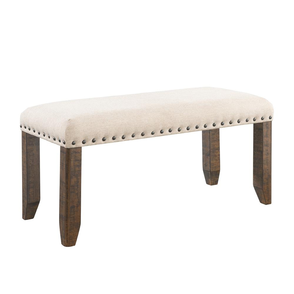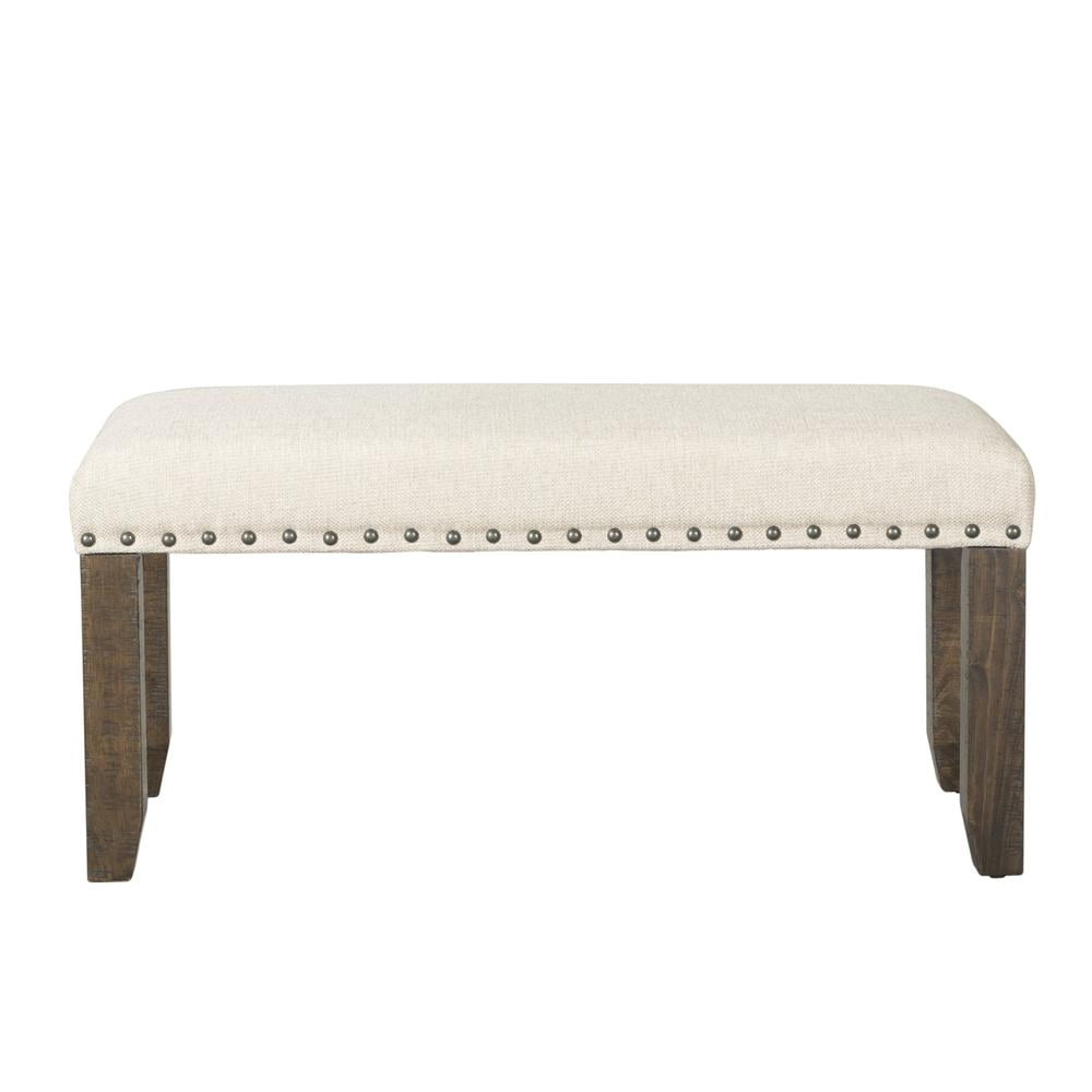 Finish: Smokey Walnut Material: Rubber Wood; Engineered Wood w. Acacia Veneer Cream Upholstery Chic Nail Head Trim Smokey Walnut Finish Legs Distressed Wood