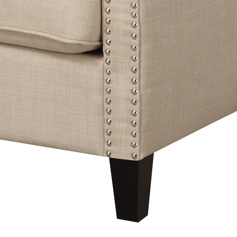 Trendy metal stud trim Stylish low back Contemporary straight edge arms Espresso wooden feet