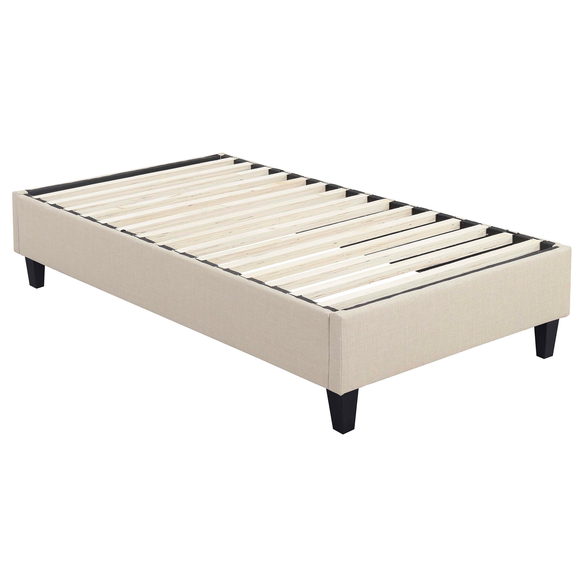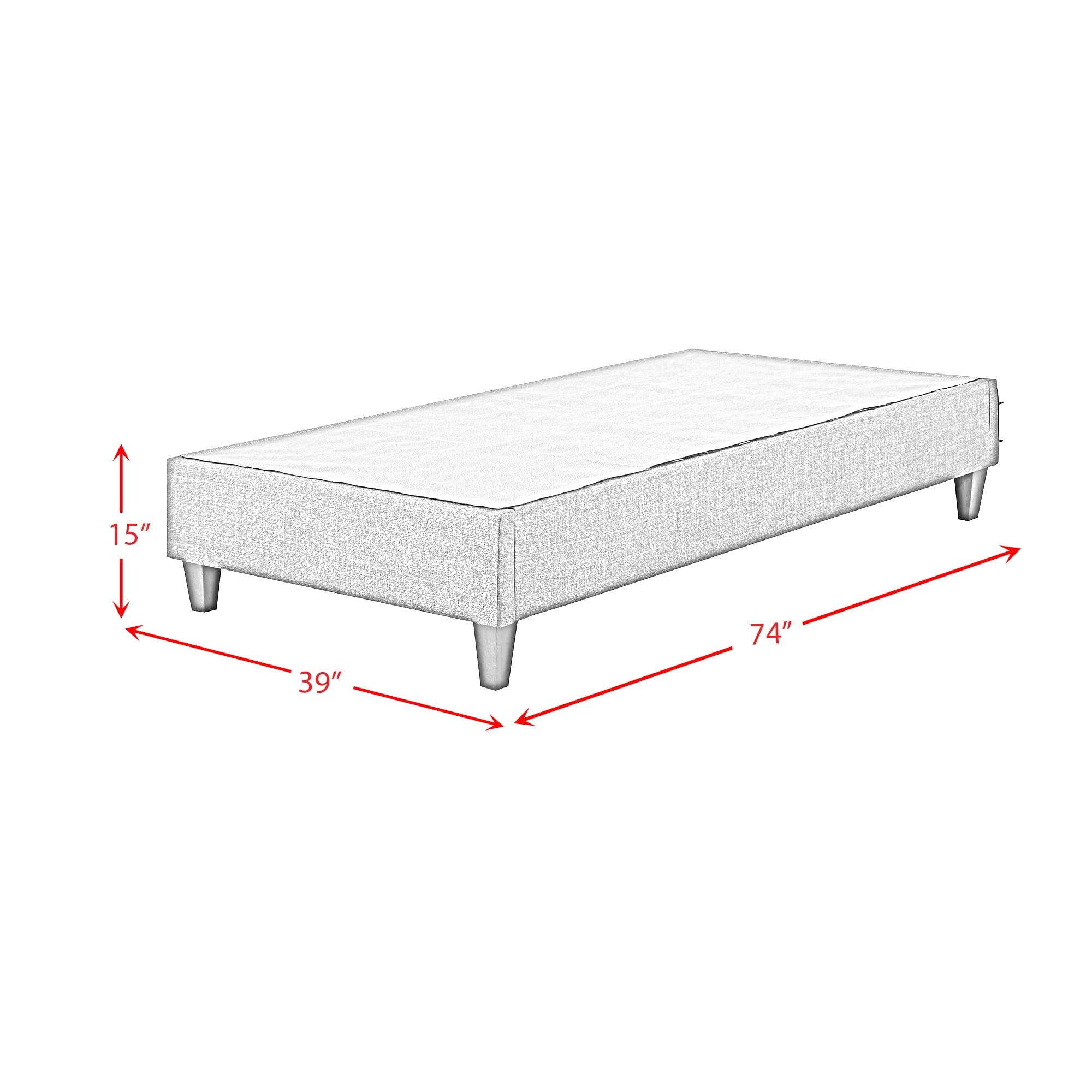Upholstered Platform BaseShips Ground5.5″ Feet HeightHardware Included to Attach HeadboardMattress Only Required- Materials Pine/Plywood- Foam Cushion Filling- Fabric Content 100% Polyester Height 15 Depth 74 Assembly Required Yes Product Dimensions Headboard:2x39x10- Footboard