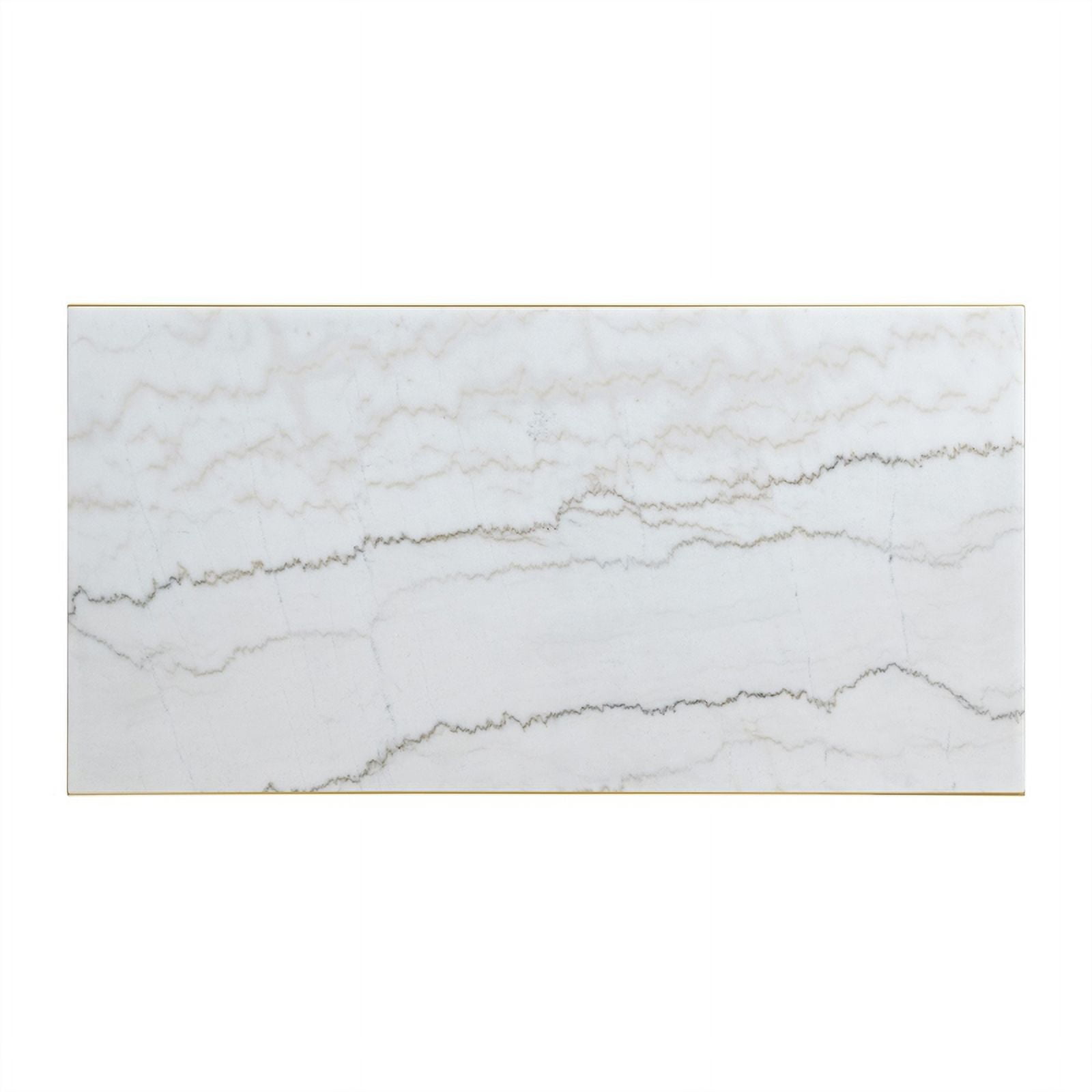 White Marble Table Top Rectangular Design Powder Coated Metal Legs Intricate Gold Metal Base Contemporary Design Sleek, Clean Lines