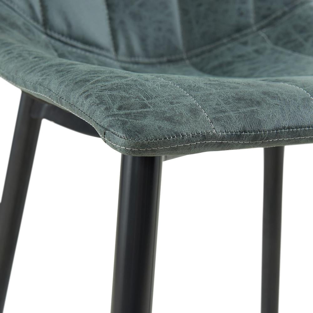 The Picket House Furnishings Conner Counter Height Side Chair Set is a great partner for a counter height dining table. This chair is designed with faux leather bucket seating, for your support. Also, the distressed fabric and detailed stiching provides additional character for this chair. The dark metal legs give an effect that the chair appears taller in nature. Not only can this chair be ideal for a dining area but can also accent a bar area as well. This transitional designed piece will be sure impress you. Features: Includes: Two Chairs Counter Height Distressed, Grey Faux Leather Bucket Style Seating Gun Metal, Chair Legs Transitional Design Specifications: Assembly Required: Yes Chair Weight Capacity: 300lbs. Frame Material: Iron Upholstery Material: 75% Polyester / 25% Polyurethane Upholstery Color: Gray