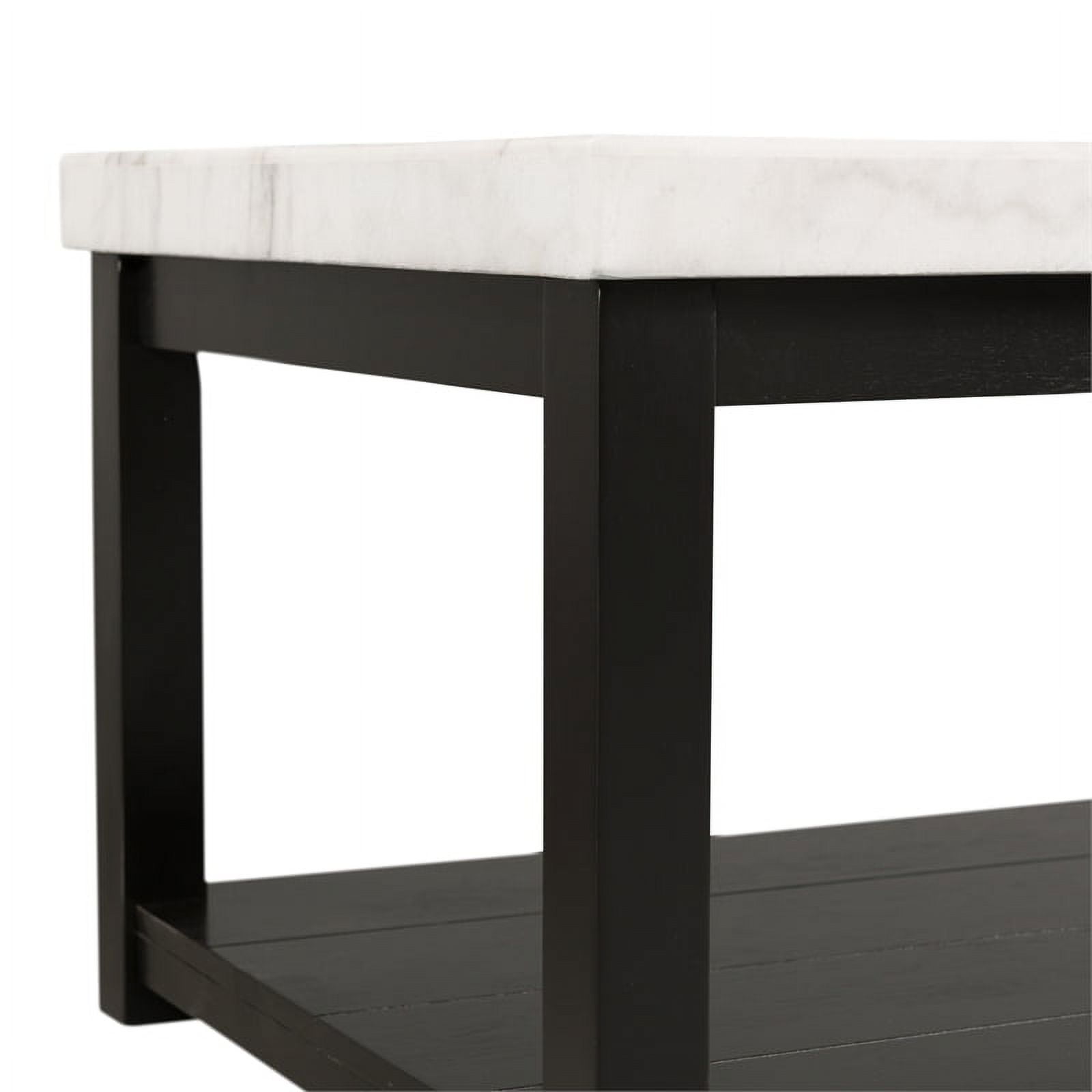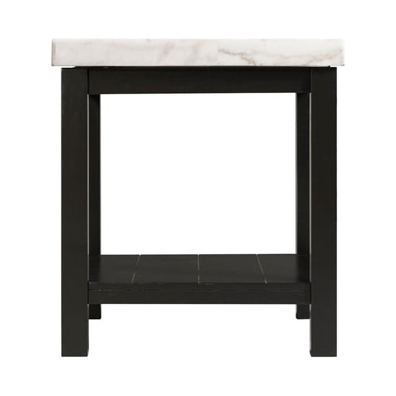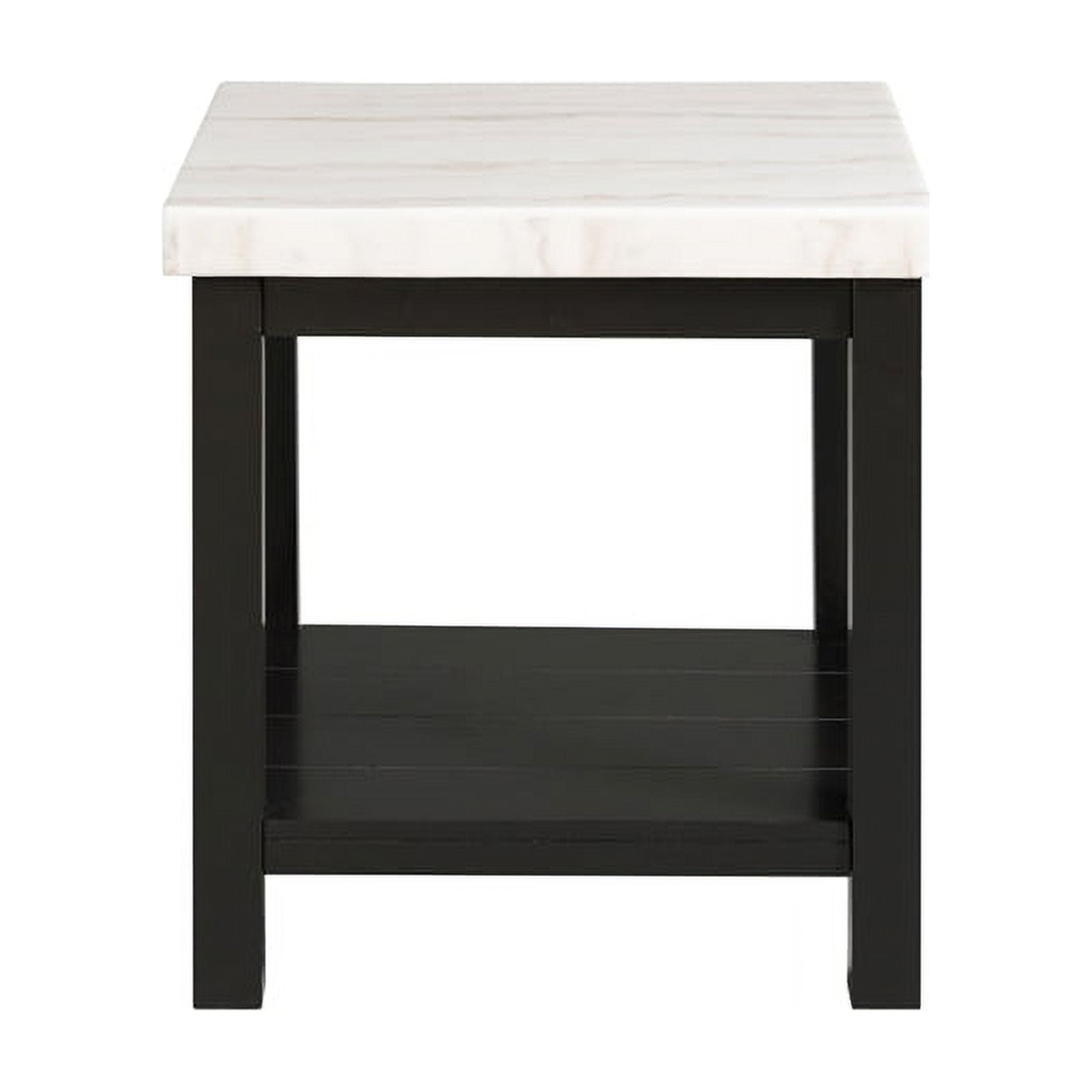 White, Marble Table Top Black, Wooden Base Plank Style Bottom Shelf Square Shape Contemporary Style Straight Legs