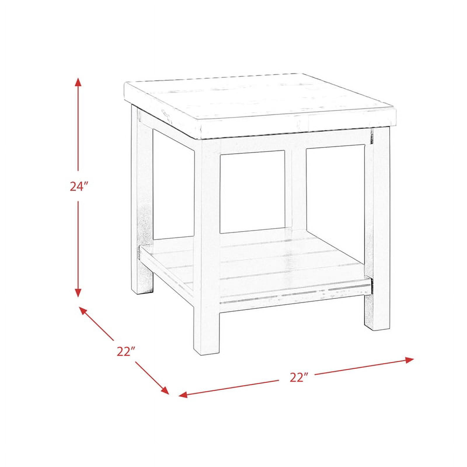 The Picket House Furnishings Evie White Marble Square End Table will give your living room the update you’ve been craving! This accent table features a solid, marble table top, that contrasts beautifully with the black wooden base. This end table comes with a bottom shelf, ideal for displaying your favorite decor. The plank style shelf adds extra character to this already stunning piece. Add this gorgeous piece to your home today for a look that will last year after year. Features : White, Marble Table Top Black, Wooden Base Plank Style Bottom Shelf Square Shape Contemporary Style Straight Legs