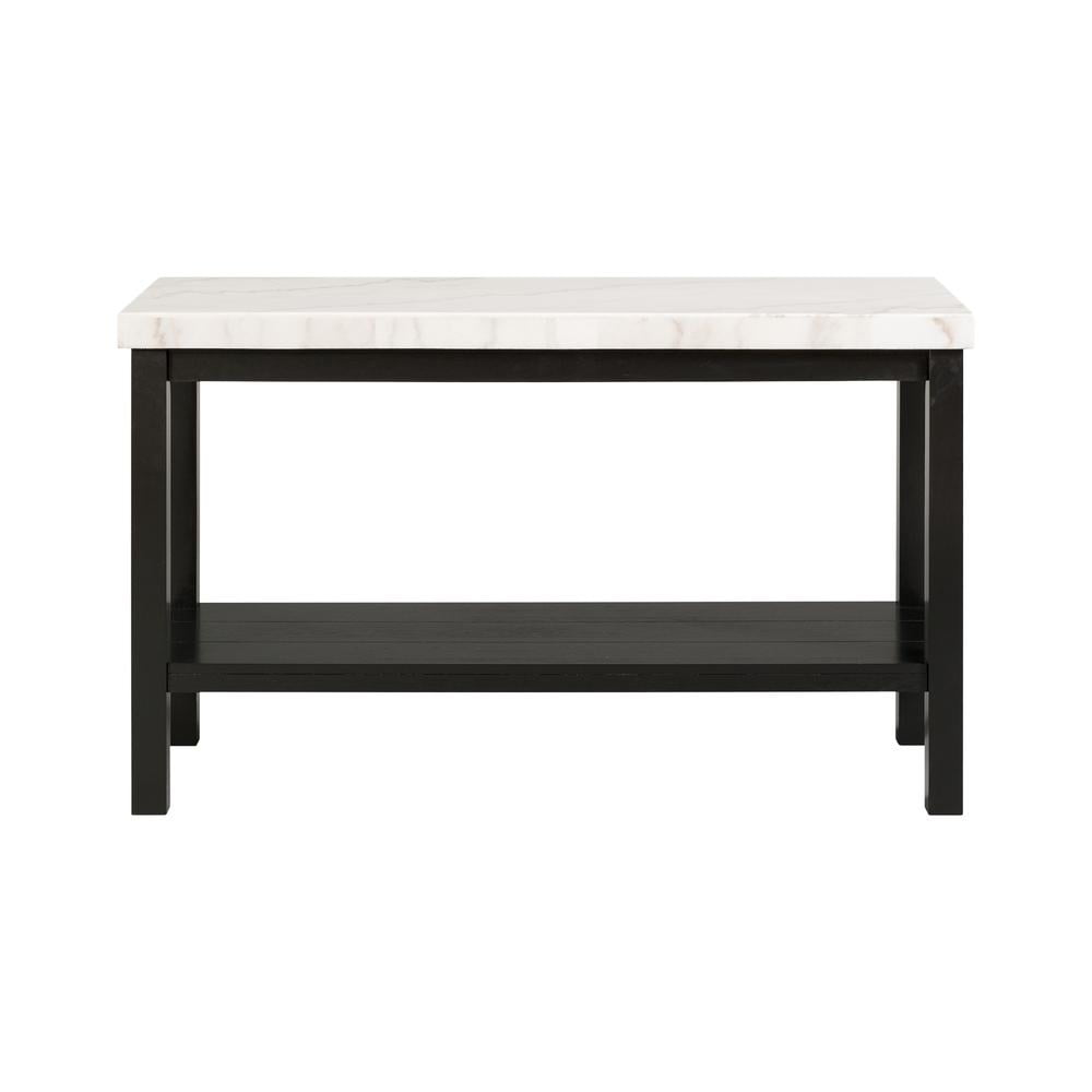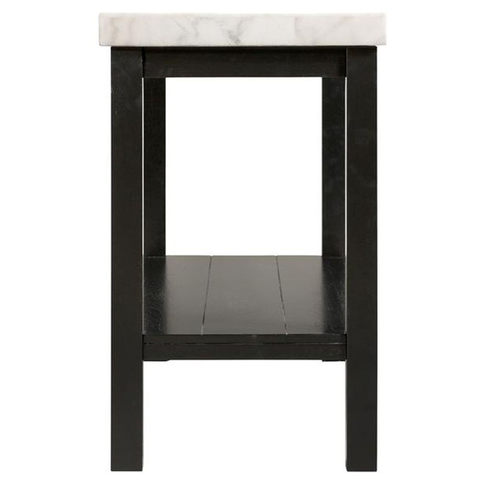 White Marble Table Top Plank style shelf adds extra character to this already stunning piece Matching End Table and Accent Table Sold Separately