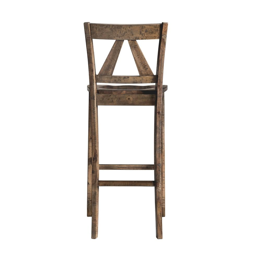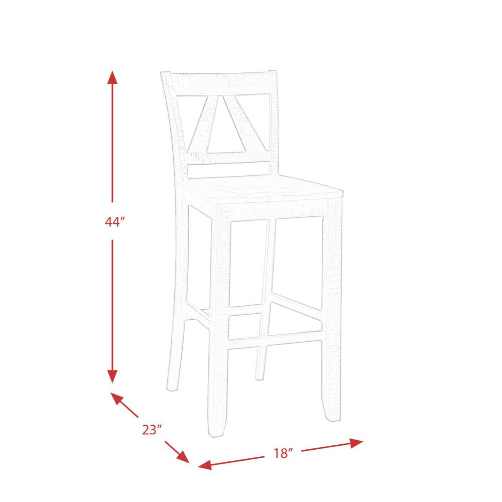 Includes Two Bar Stools Fan Back Design Bar Height Solid Wood Seat Distressed Markings Throughout Dark Walnut Finish Flynn Collection Rustic Farmhouse Design