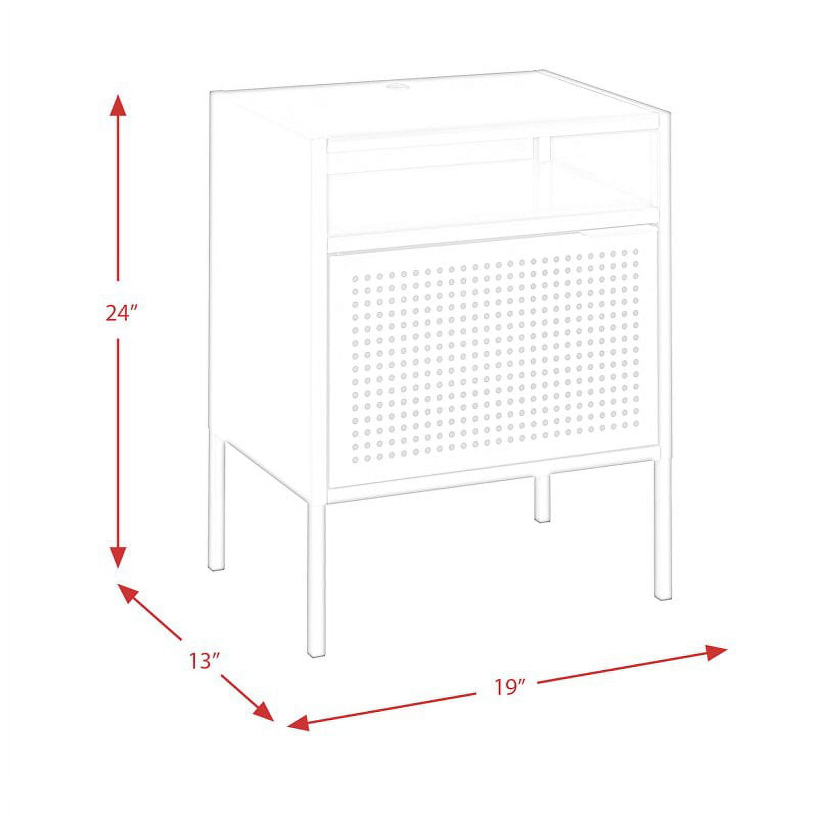The Picket House Furnishings Gemma Nightstand is a quick and simple way to update any room! This table can be used as a nightstand or as an accent table in your living room. You can even keep your devices charged while you binge watch your favorite show or while you sleep. Thanks to the multiple color options, you’re sure to find a color that goes great in your home! The table is made of metal and features an open shelf space as well as a cabinet to store away your belongings. Features: USB Port Open Shelf Large, Spacious Cabinet Multiple Color Options Made of Metal Transitional Design