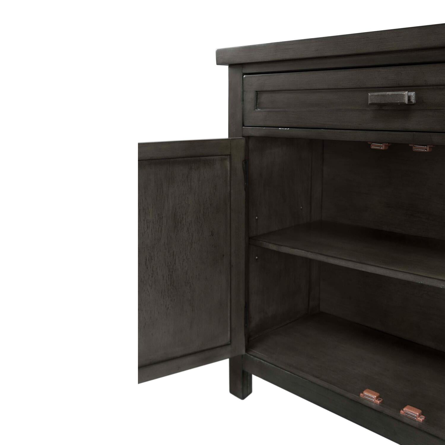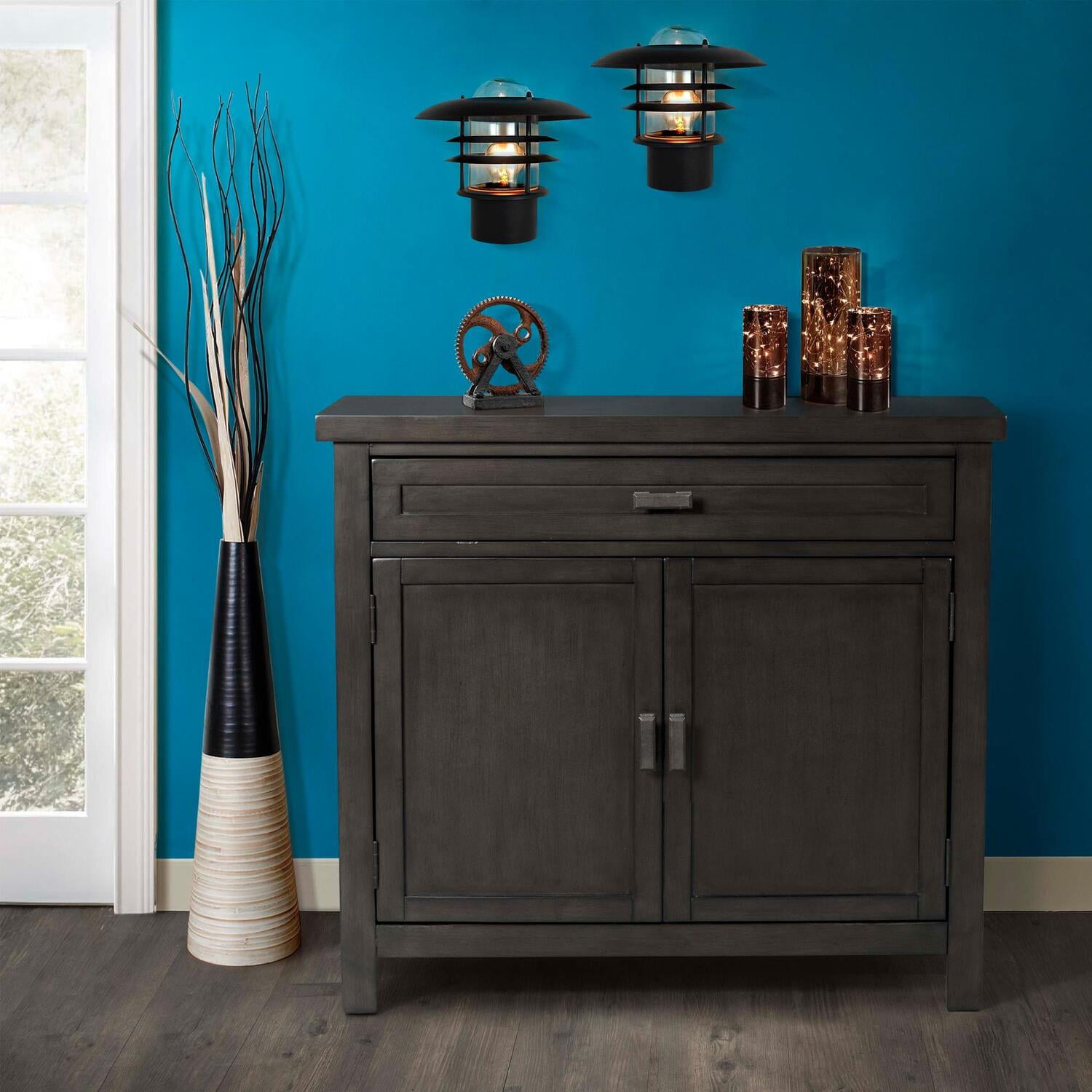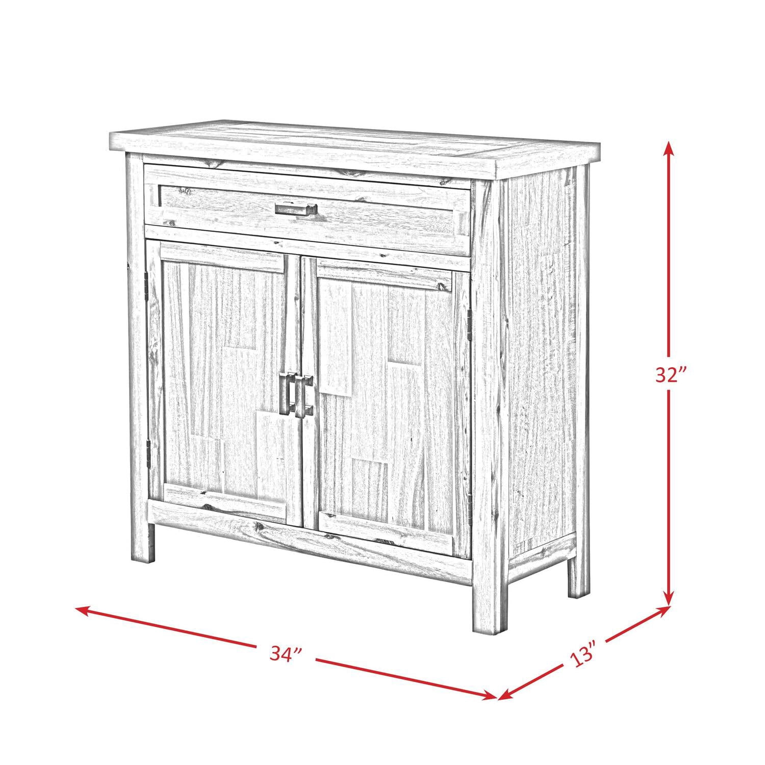 Ship Method: LTL or Small Parcel:Small Parcel Height:32 Depth:13 Assembly Required:Yes Special features:Two Cabinet DoorsOne DrawerOne Interior Adjustable ShelfGray FinishSilver HandlesStraight LegsAnti-Tipping # of Cabinets:1 # of Drawers:1 Materials:Acacia Wood/MDF with Acacia Veneer
