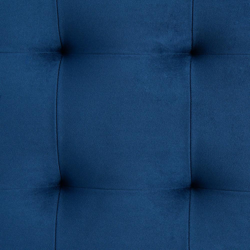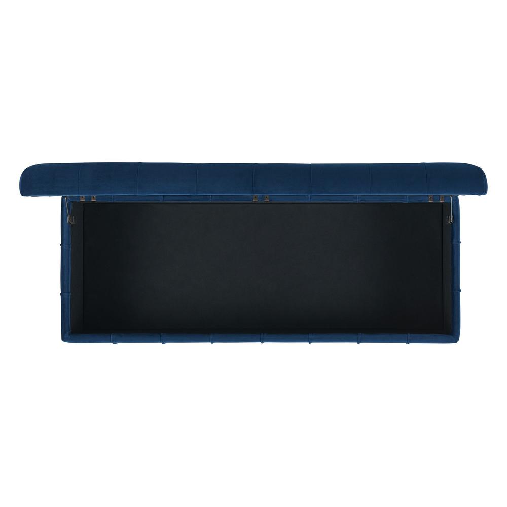 The Picket House Furnishings Jude Tufted Storage Ottoman is the missing piece for your home! This storage ottoman features a tufted lid, adding extra flair to this already stunning piece. Detailed square stitching and piping along the ottoman elevates it to the next level. Easily store away blankets in the available storage space. The velvet fabric complements the natural finish of the wooden feet beautifully. Features: Storage Ottoman Tufting on Lid Square Detail Stitching Wooden Legs Luxurious Velvet Fabric Modern Design Multiple Color Options Specifications: Ottoman Dimensions: 17″D x 49.5″W x 8″H (interior storage) Weight Capacity: 300 lbs. Upholstery Material: 100% Polyester Assembly Required: Yes