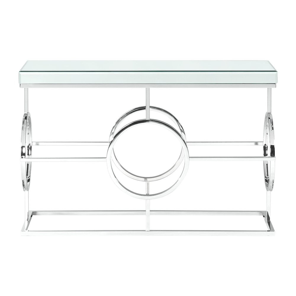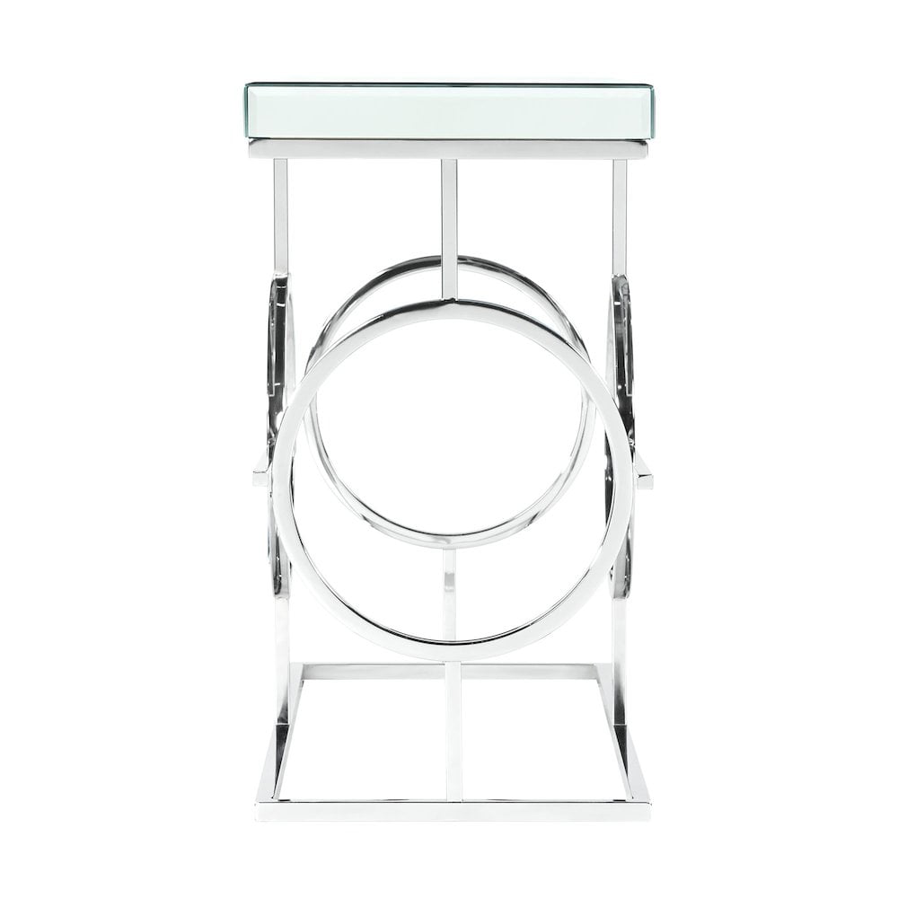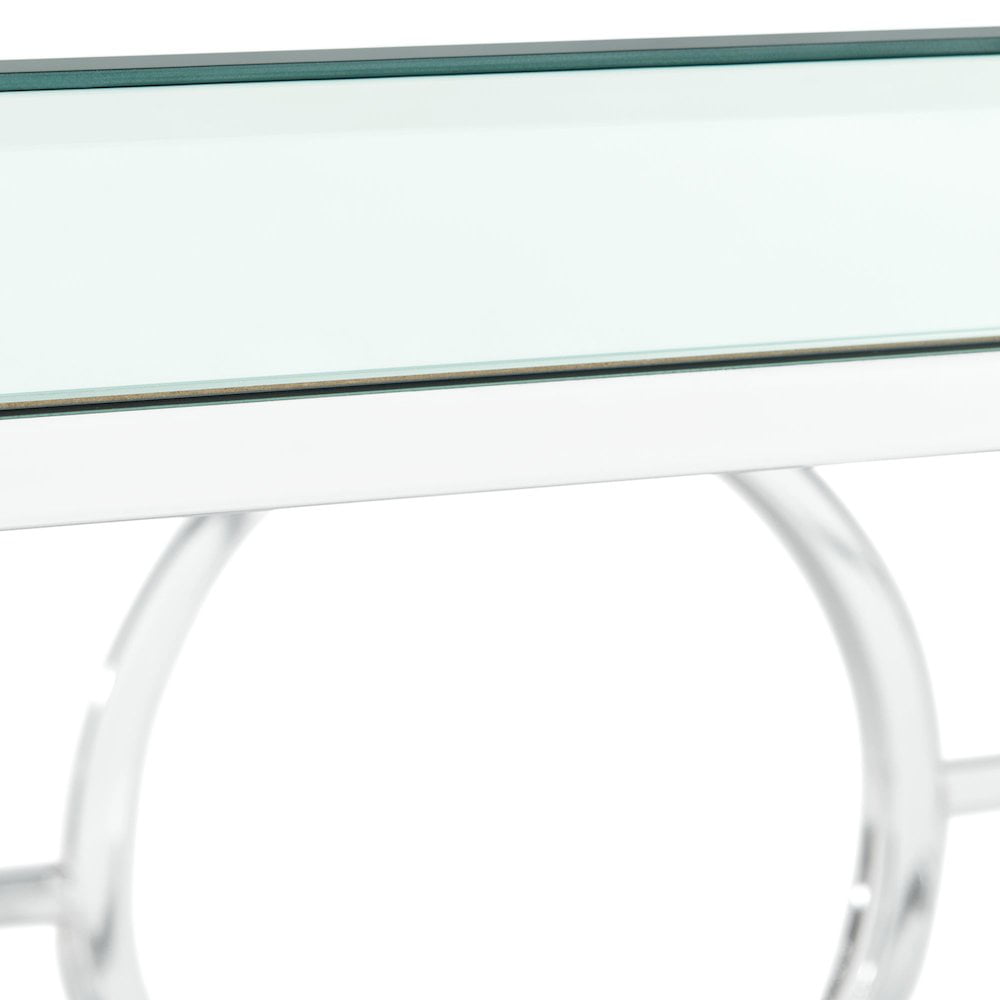 The Picket House Furnishings Katie Rectangle Mirrored Sofa Table will have you feeling like a queen in your living room! This accent table features a mirrored table top design, taking glam style to the next level. The table base features an intricate design, one that you will admire more and more every day. The sleek, chrome finish is going to pair well with any existing, glamorous decor you might already have. Add this ultra glam accent table to your home today for a look that will always be in style. Features: Rectangular Shape Mirrored Table Top Sleek, Chrome Metal Base Intricate Table Base Design Modern Glam Style