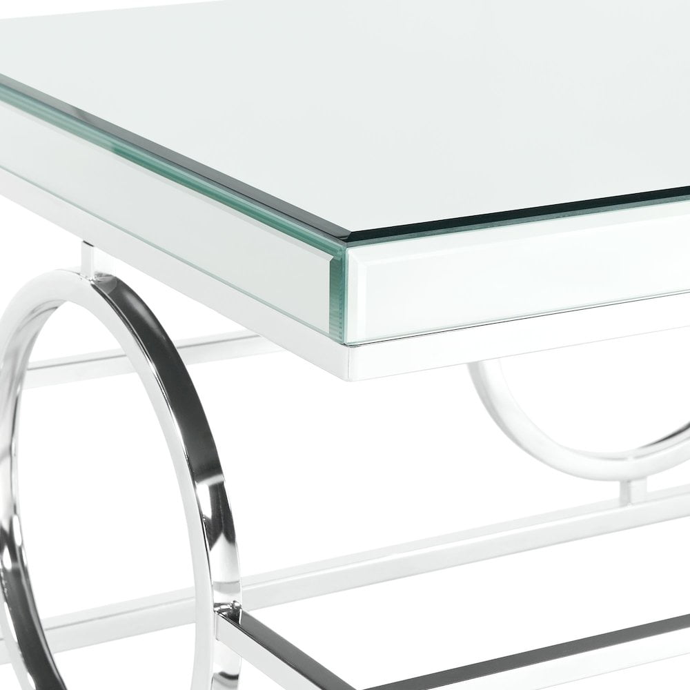 Rectangular Shape Mirrored Table Top Sleek, Chrome Metal Base Intricate Table Base Design Modern Glam Style