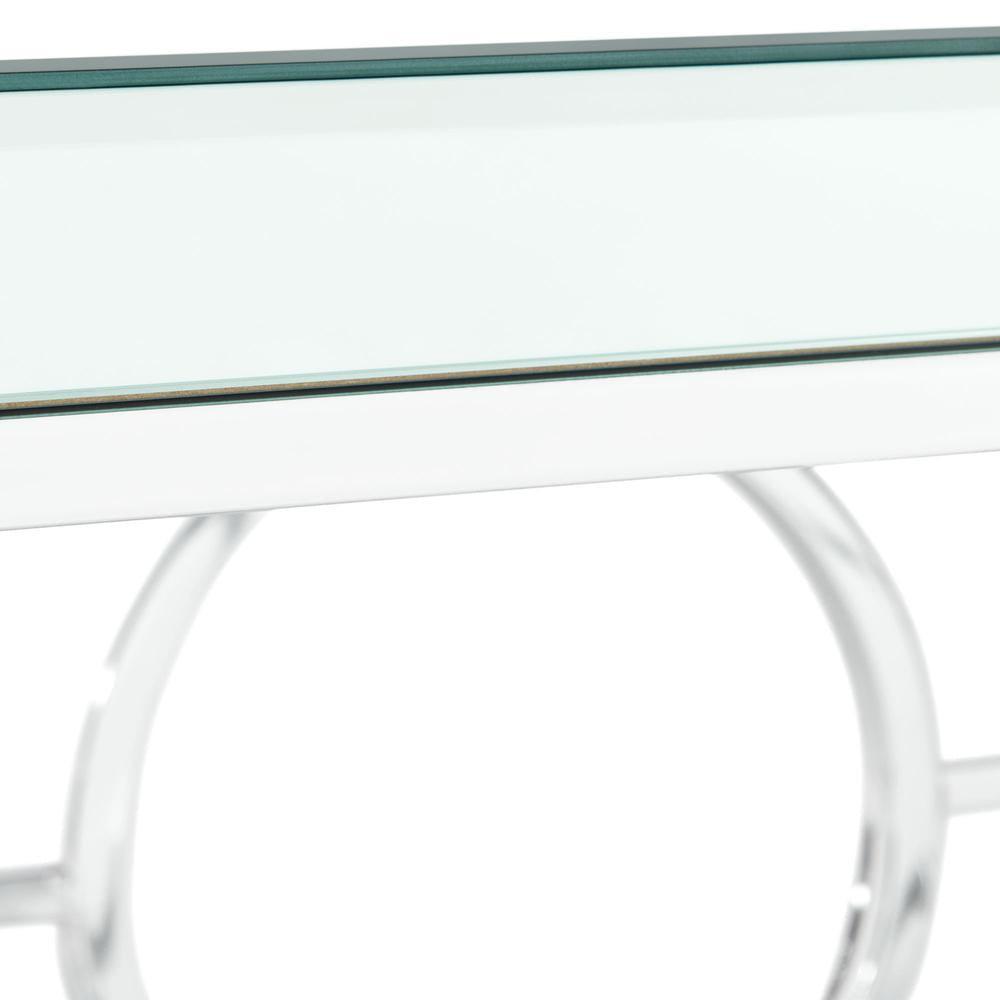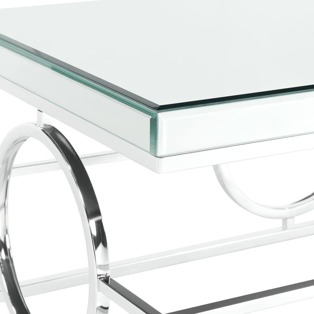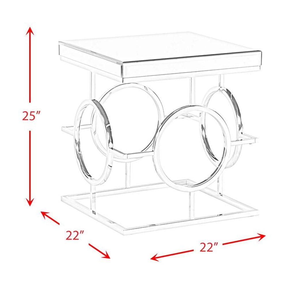 The Picket House Furnishings Katie Square Mirrored End Table will have you feeling like a queen in your living room! This accent table features a mirrored table top design, taking glam style to the next level. The table base features an intricate design, one that you will admire more and more every day. The sleek, chrome finish is going to pair well with any existing, glamorous decor you might already have. Add this ultra glam accent table to your home today for a look that will always be in style. Features: Square Shape Mirrored Table Top Sleek, Chrome Metal Base Intricate Table Base Design Modern Glam Style