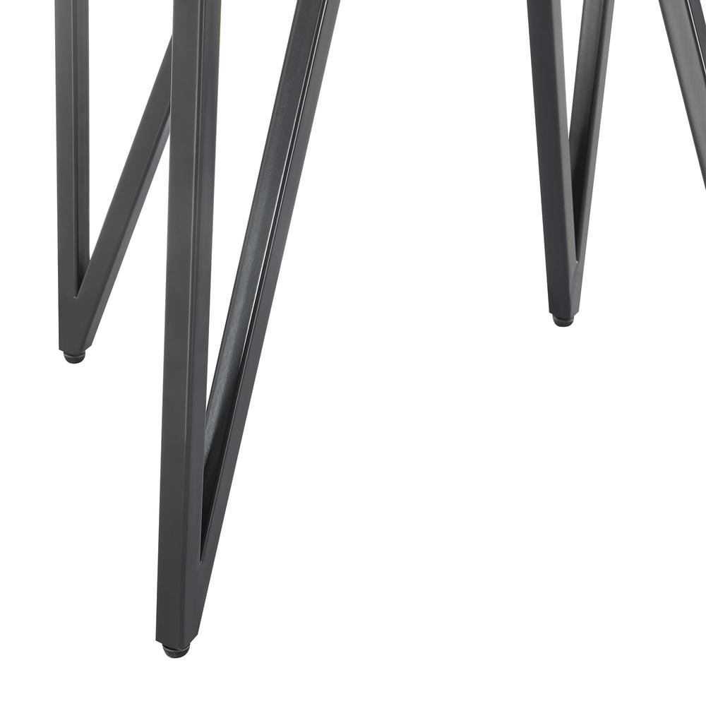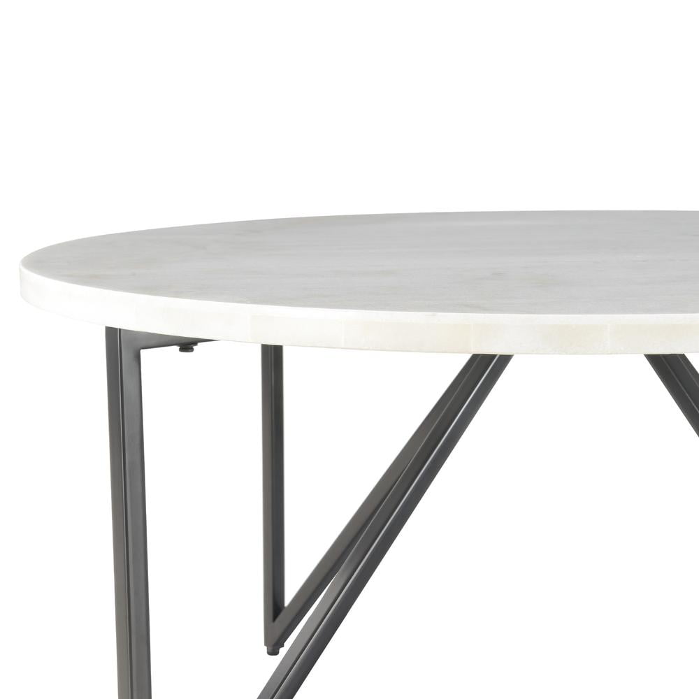 Round End Table Marble Table Top Black Metal Legs Contemporary Design Intricate Table Base Clean, Sleek Lines