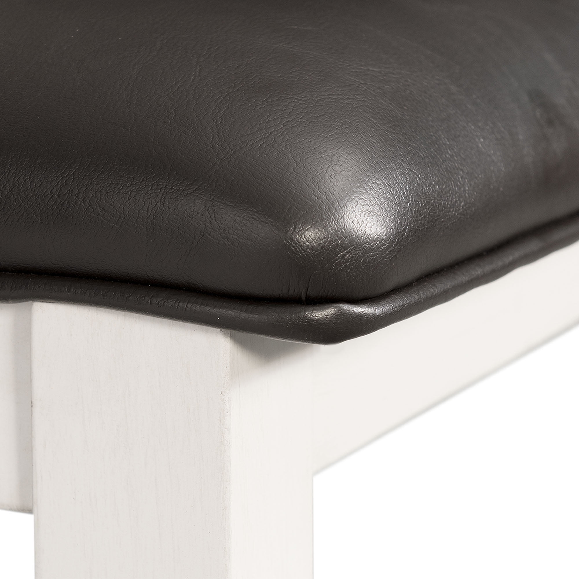 Includes: Table, Four Chairs & Bench Standard Height Rectangle Table Walnut Table Top, White Table Base Ladder Back Chairs Chocolate, Upholstered Seats Wire Brush Finish