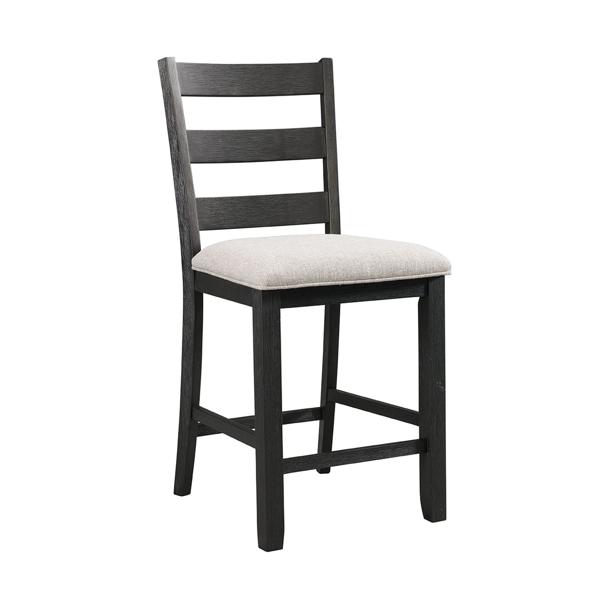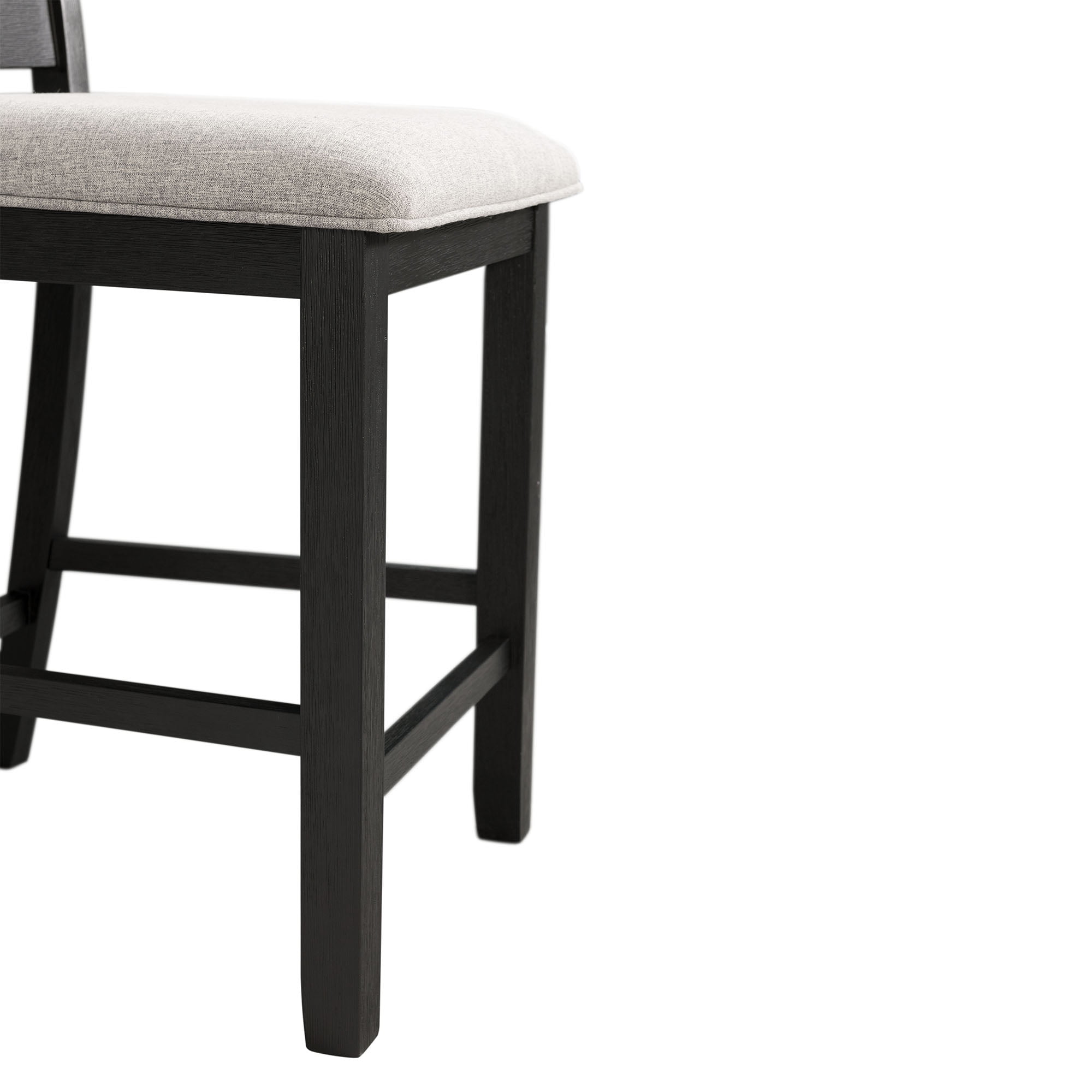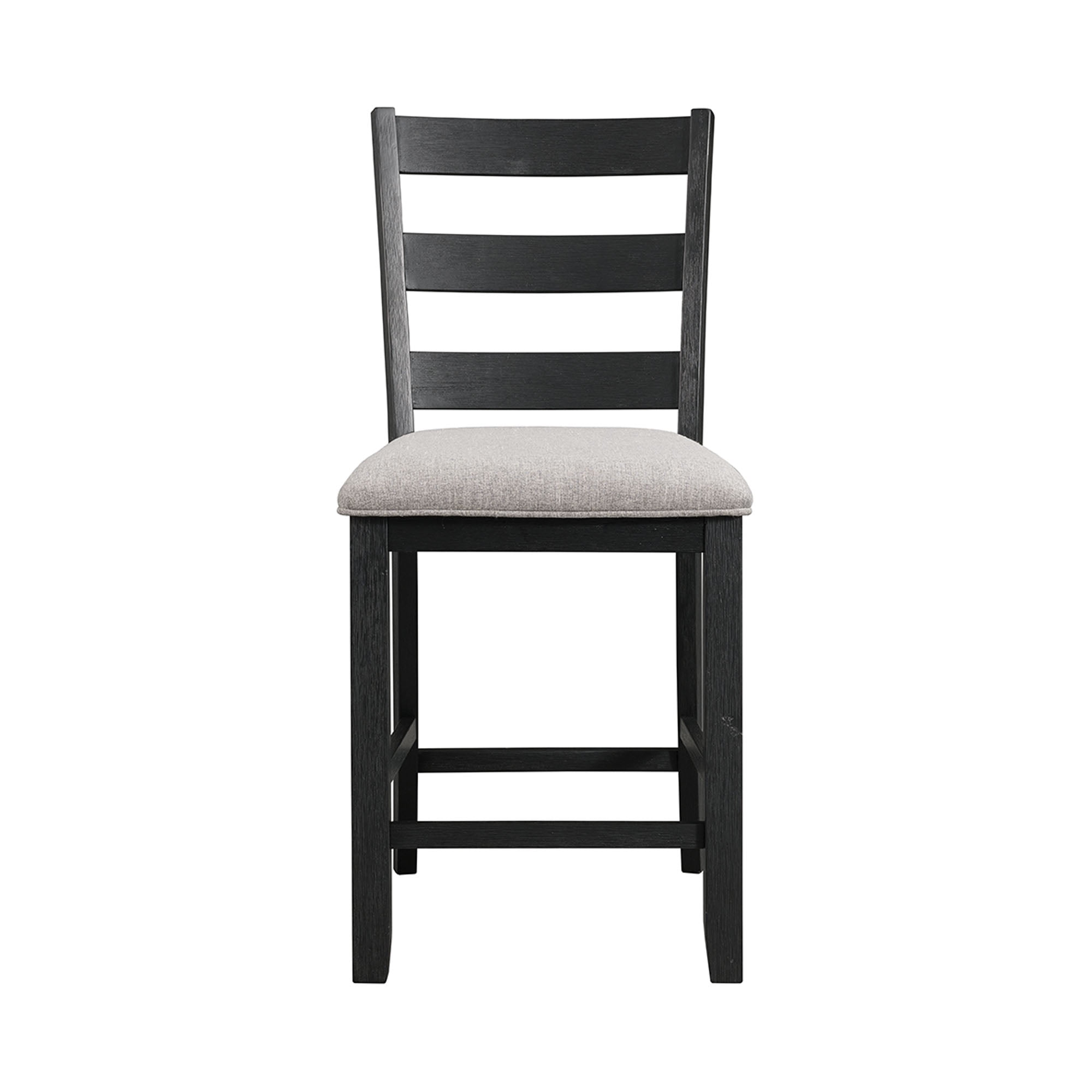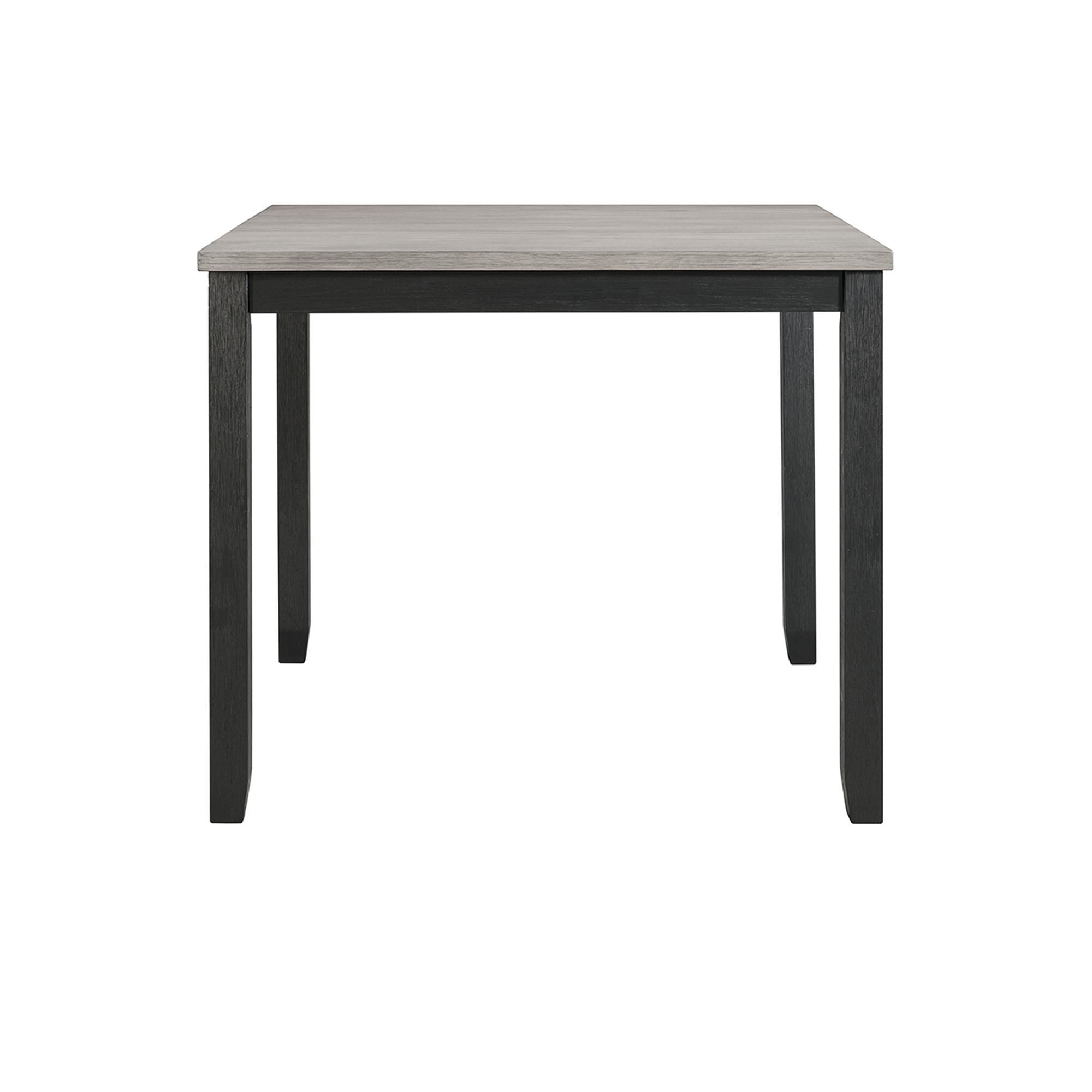 Includes: Table & Four Chairs Counter Height Rectangle Table Gray Table Top, Black Table Base Ladder Back Chairs Gray, Upholstered Seats Wire Brush Finish Chair Dimension: 22″L x 19″W x 42″H Table Dimension: 42″L x 42″W x 36″H Ships in One Box