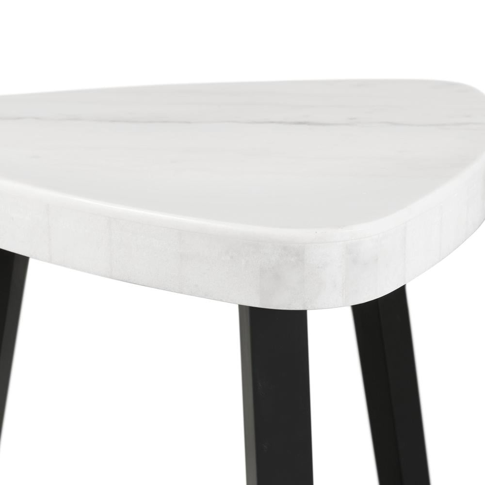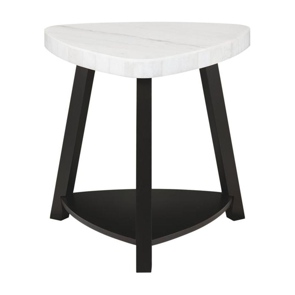 The Picket House Furnishings Lena White Marble Top End Table is begging to be added to your living room! This table features a guitar-pick shaped design, making it super easy to fit any space in your home. The white marble top, contrasts perfectly with the black, wooden base. This table serves a dual purpose thanks to its bottom shelf; display your favorite decor. Add this accent table to your home today for a look that will never go out of style. Features: White, Marble Table Top Guitar-Pick Shaped Table Bottom Shelf Black, Wooden Base Contemporary Style Transitional Color