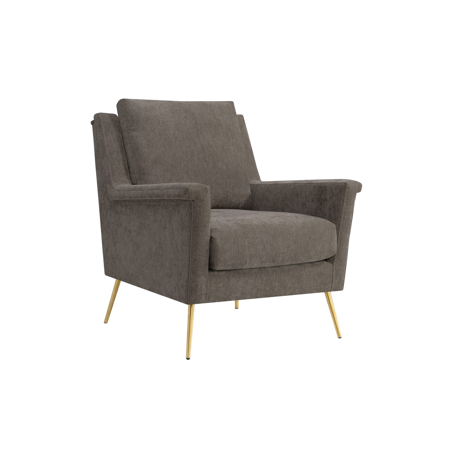 Mid-Century Style Large, Oversized Deep Seating Plush, Overhang Arm Sleek, Polished Gold Legs Piping Transitional Colors Seat and Back cushion are removable