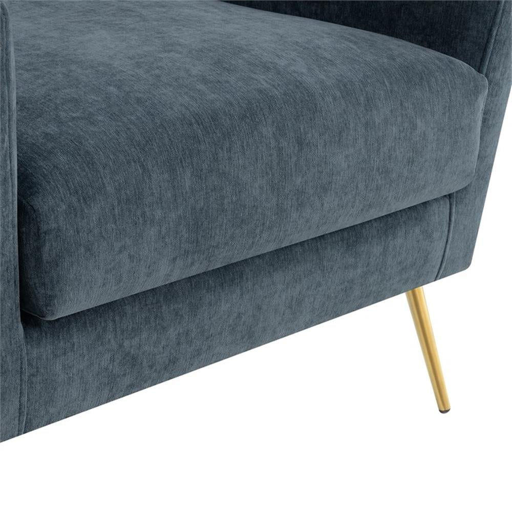 The Picket House Furnishings Lincoln Accent Chair is living room goals! This mid-century style chair features gold legs, adding extra flair to this already stylish set. Not only is the cushion foam filled, but the oversized, deep seating will make this more than just a pretty chair you display; but one that you will also love to relax in. The straight arms are plush like, and feature a slight overhang. Sleek, clean lines and piping throughout make this chair a standout for years to come. Features: Mid-Century Style Large, Oversized Deep Seating Plush, Overhang Arm Sleek, Polished Gold Legs Piping Transitional Colors Specifications: Arm Height: 24.5″ Arm Width: 4″ Seat Height: 19.5″ Seat Depth: 20″ Upholstery Material: 100% Polyester, Foam, Fiber Upholstery Color: Slate Weight Capacity: 300 lbs Assembly Required: Yes