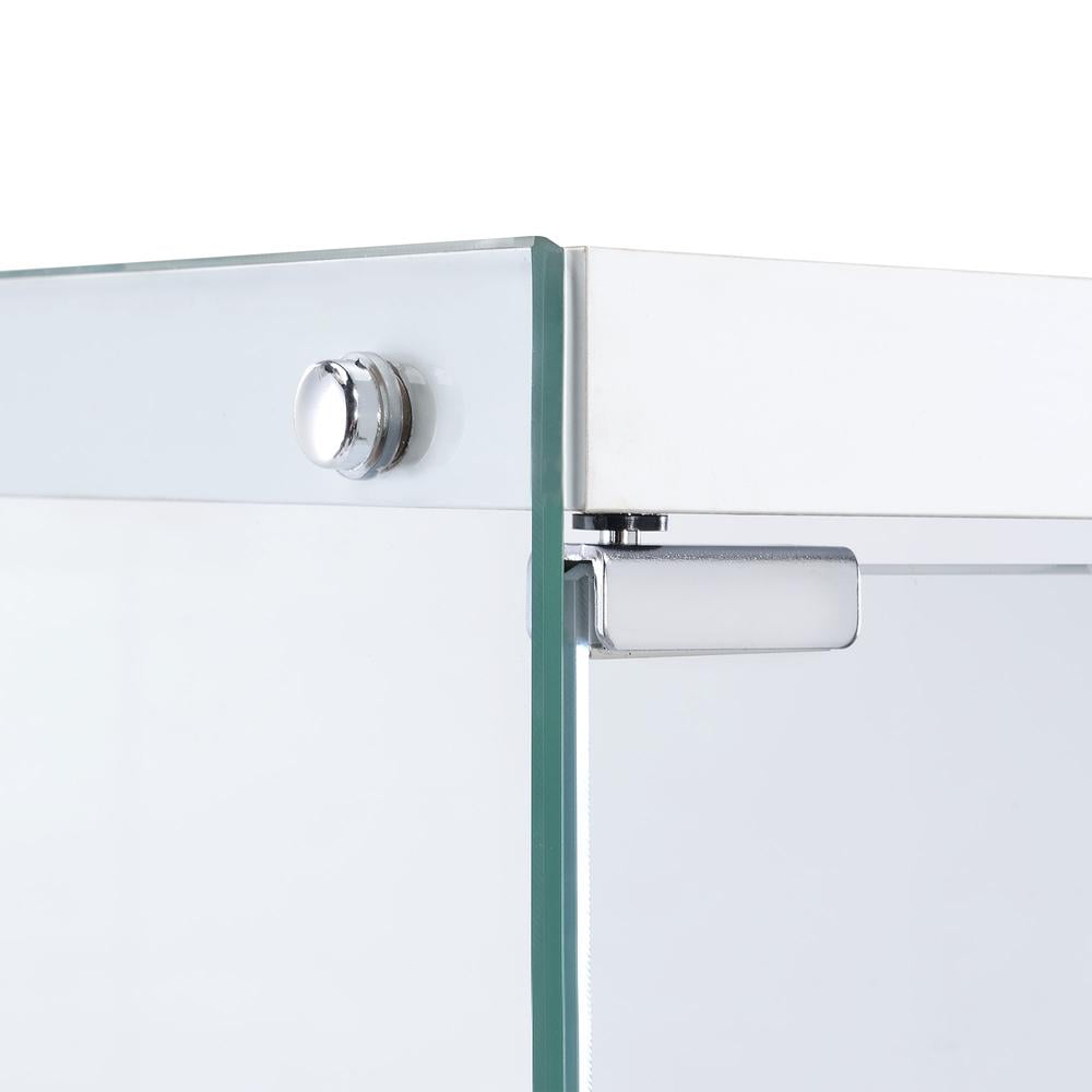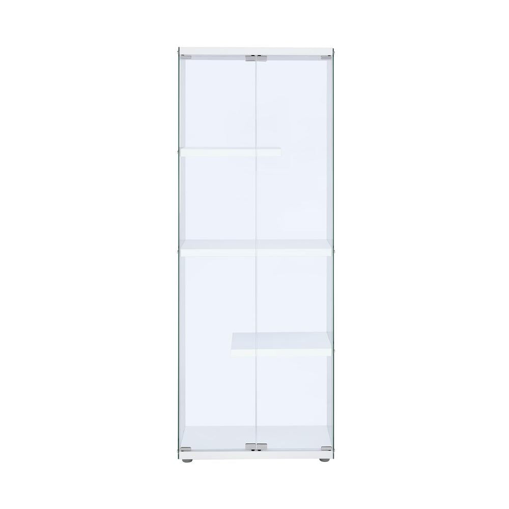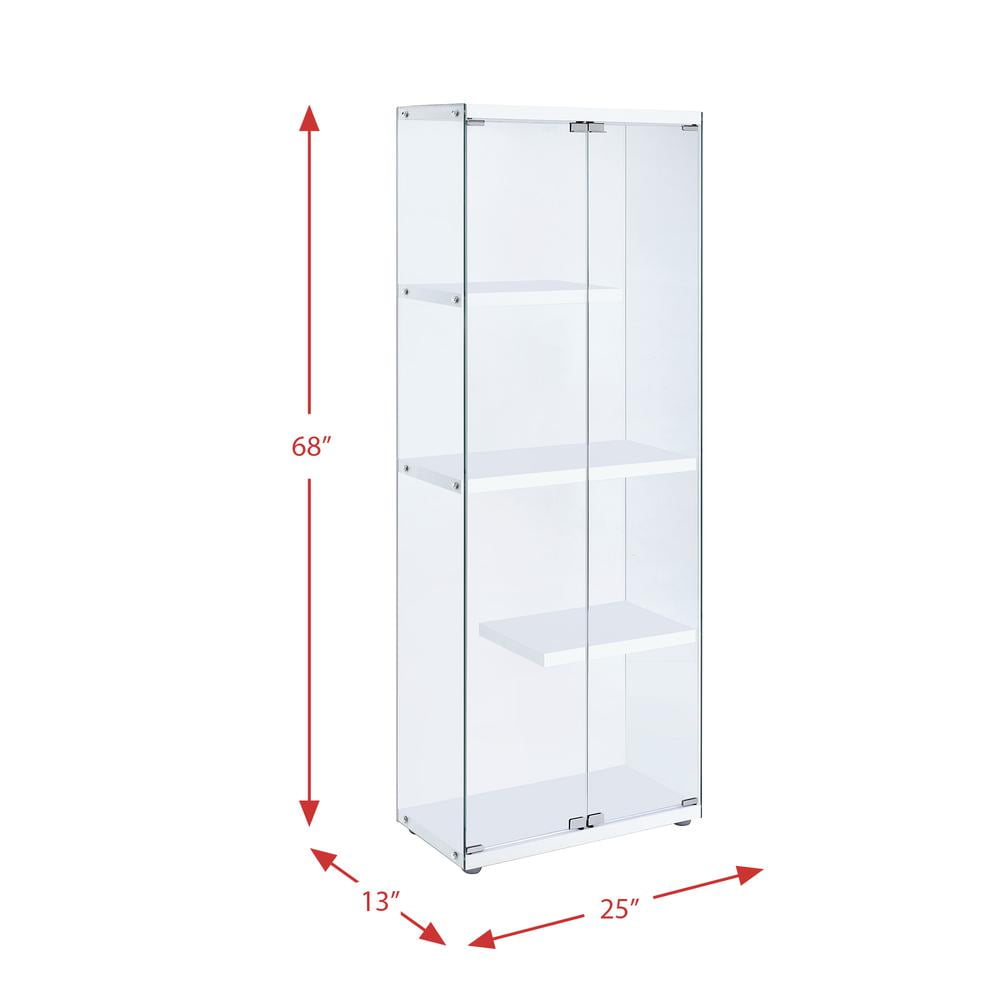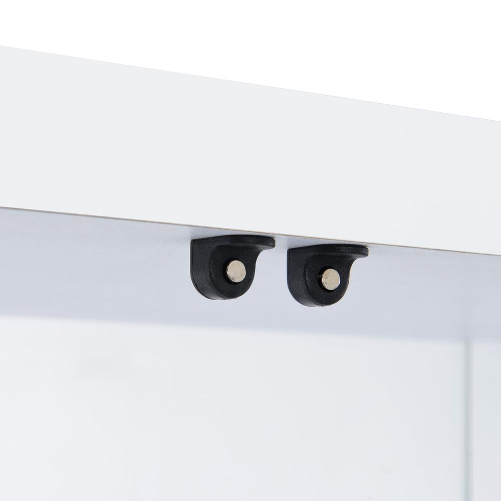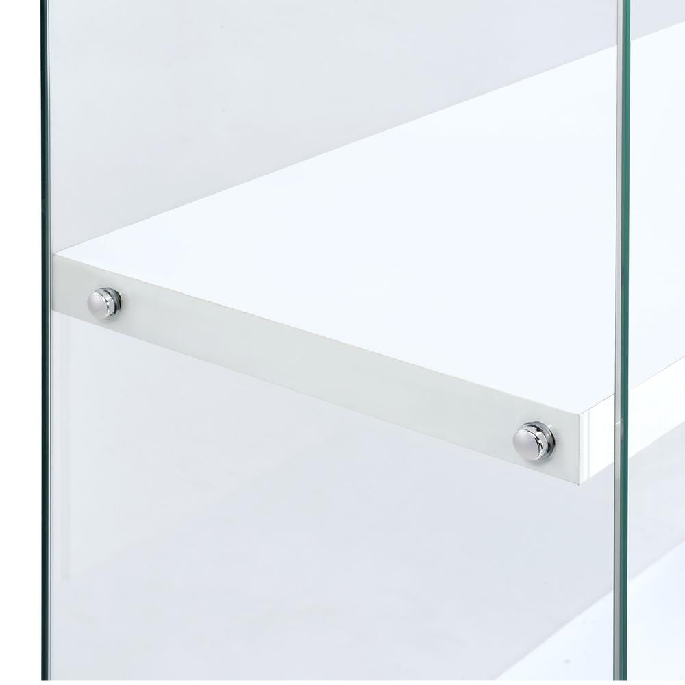 Tempered Glass Four Shelves Magnetic Doors Chrome Trim Contemporary Style Non-Adjustable Shelves