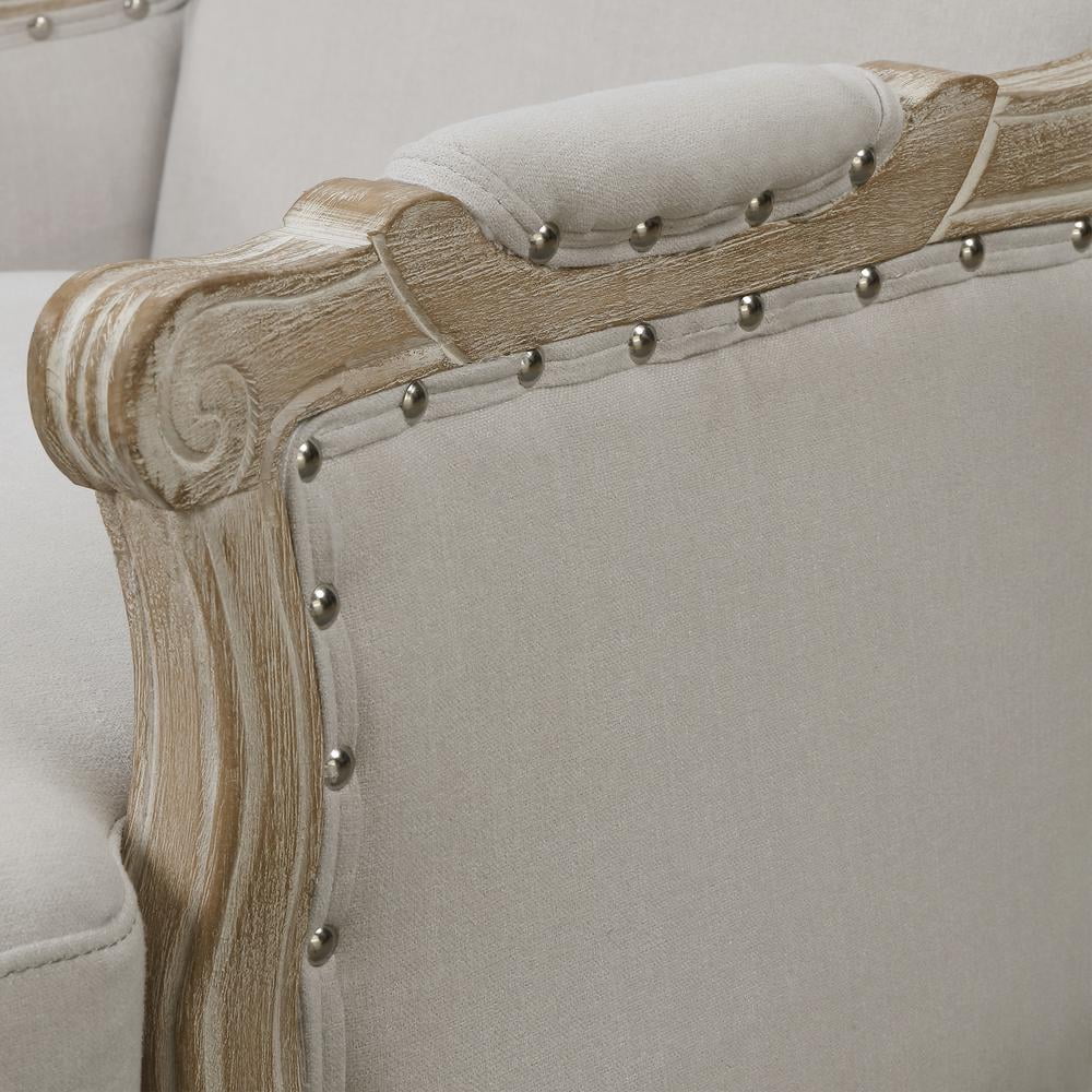 Part of Regal Collection from Elements Furniture Crafted from plywood pine wood and rubberwood Fabric content: 100% Polyester Attached back cushion Loose seat cushion Webbing seat and back construction Distressed Wood Framing Foam Cushion Back Arm Height: 23″ Arm Width: 2″ Seat Height: 20″ Seat Depth: 22″ Inside Seat Width: 24″ Back Height: 18″ Feet Height: 10″ Weights: 44 LBS