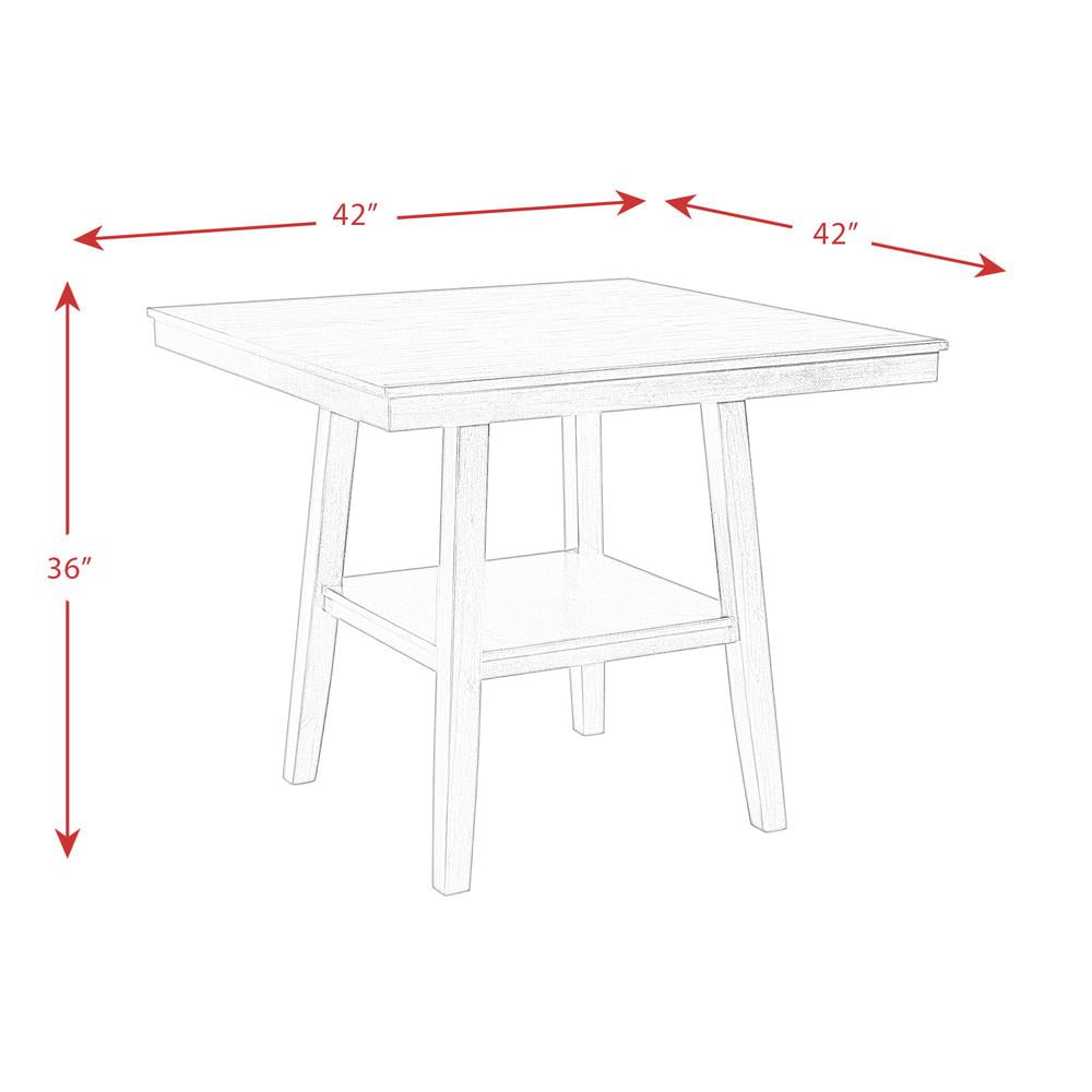 The Picket House Furnishings Reid 5PC Dining Set is ideal for small space living! This counter height set includes a table and four chairs. The table features a square design and comes with a shelf in the middle. Use the shelf to store away extra dishes or display your favorite decor piece. The side chairs come with an upholstered seat and a ladder back design. The chairs cushions come in a fashionable, faux leather chocolate that pairs well with the dark walnut finish. Add this dining set to your home today for an instant update. Features: Includes: Table & Four Chairs Counter Height Square Table Design Shelf in Middle of Table Faux Leather, Chocolate Upholstered Seats Ladder Back Chair Design Foam Cushion Seat Dark Walnut Finish Specifications: Table Dimensions: 42″ D x 42″ W x 36″ H”, 68lbs Chair Dimensions: 23″ D x 19″ W x 42″ H, 15lbs Seat Height: 25″ Seat Depth: 23″ Upholstery Material: 25% Polyurethane/75% Polyester, Foam Upholstery Color: Chocolate Assembly Required: Yes