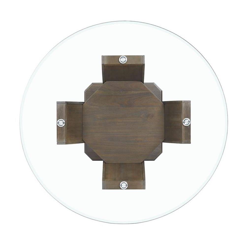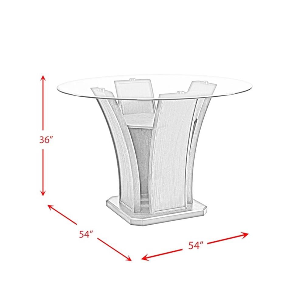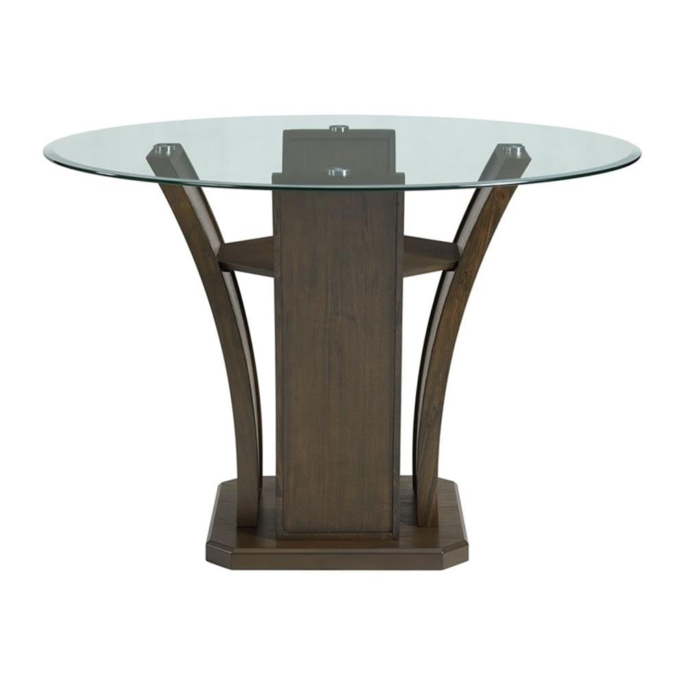 Round Table Counter Height Glass Table Top Pedestal Base Dark, Walnut Finish Transitional Style