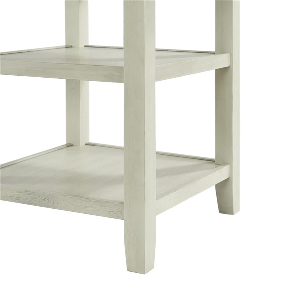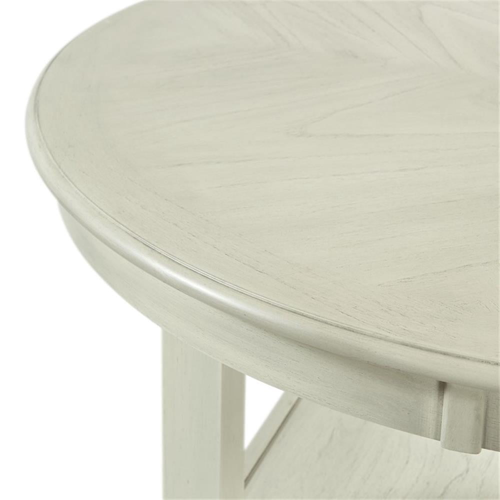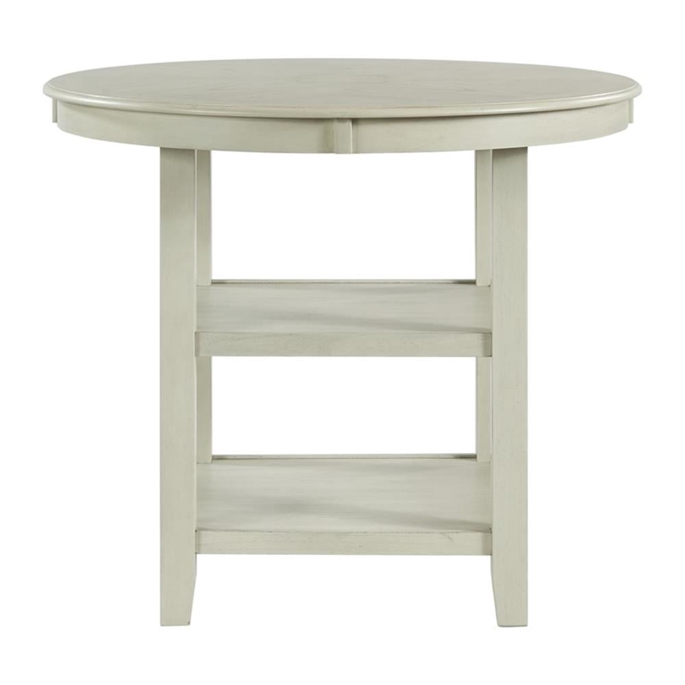 Round Table Top Counter Height Two Shelves in Table Base Bisque Finish Kicked-Out Legs Transitional Style