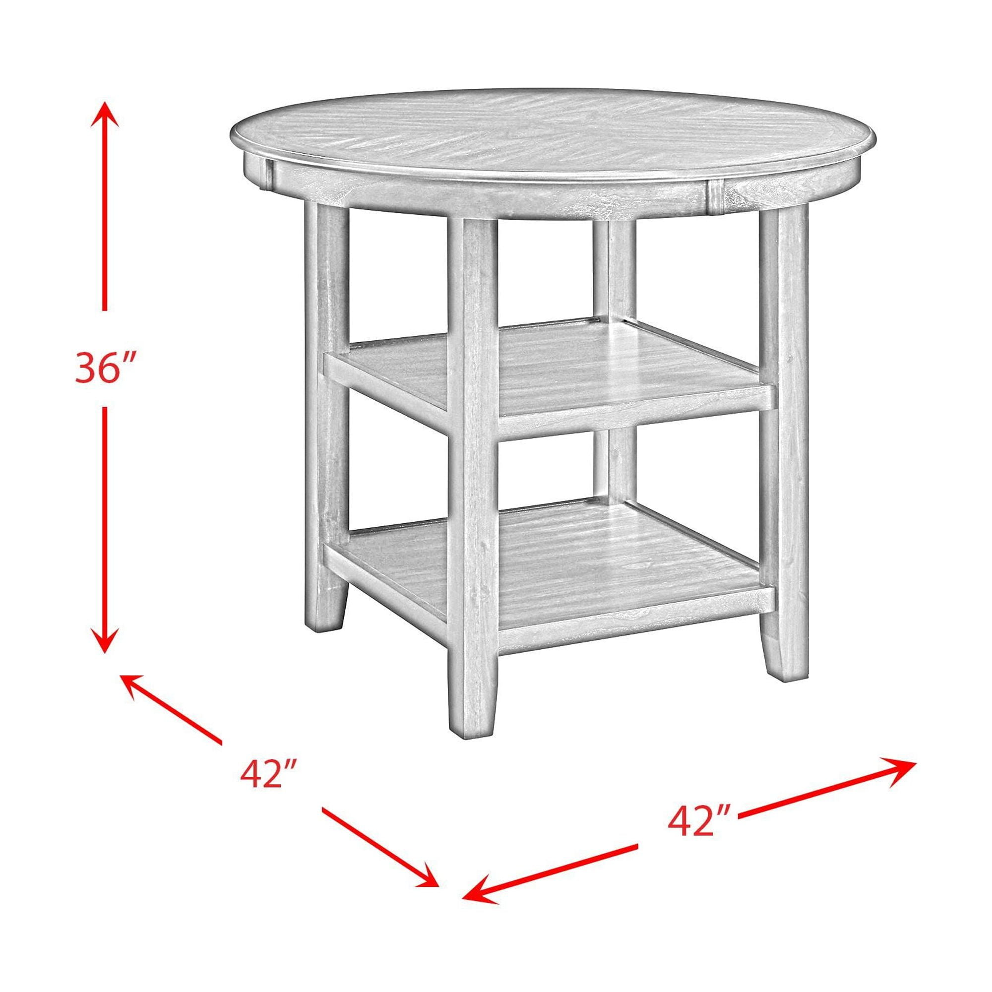 Round Table Top Counter Height Two Shelves in Table Base Dark Gray Finish Transitional Style