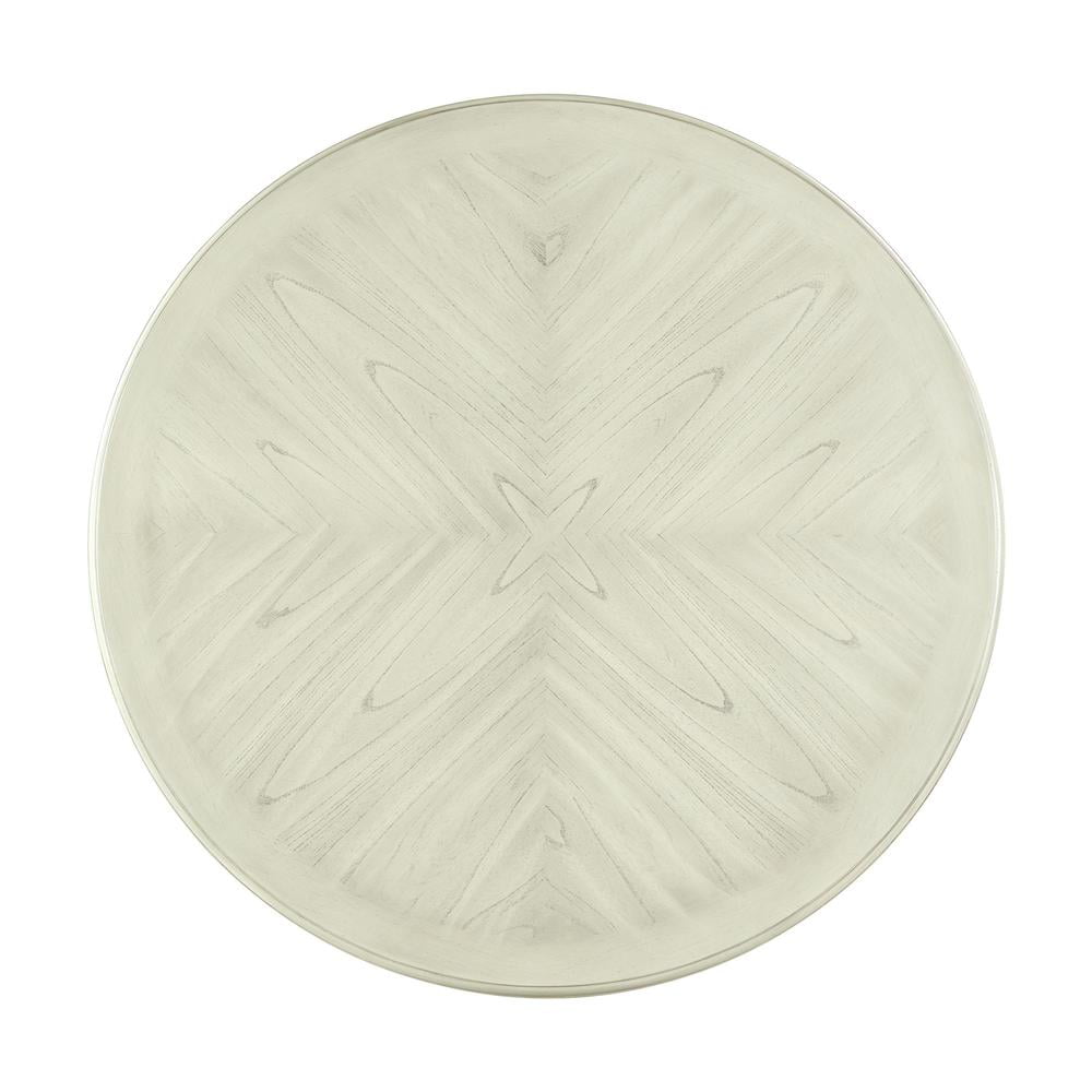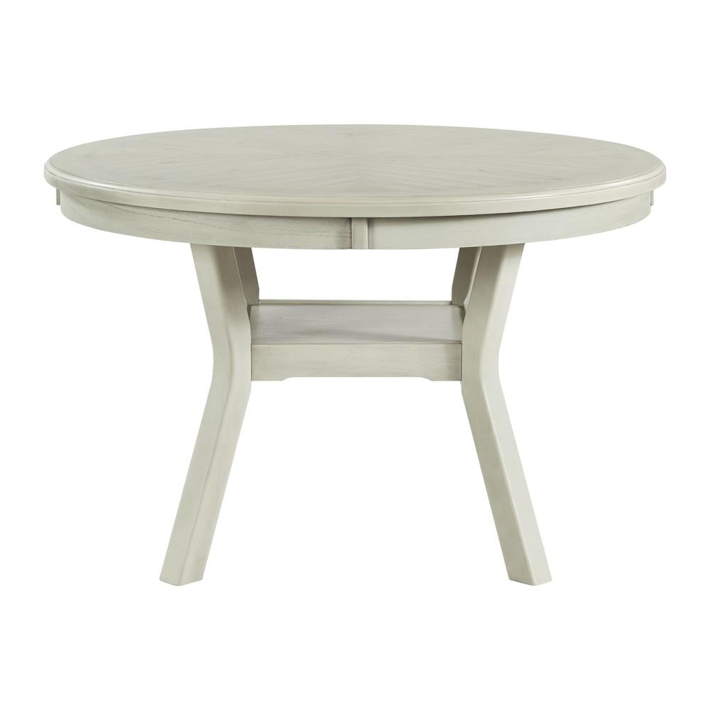Round Table Top Standard Height Shelf in Table Base Bisque Finish Kicked-Out Legs Transitional Style