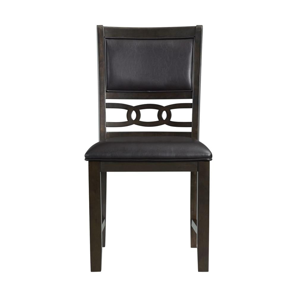 Includes Two Chairs Standard Height Upholstered Seat and Back Chain Link Design on Back Dark, Walnut Finish Black, Faux Leather Fabric Transitional Style