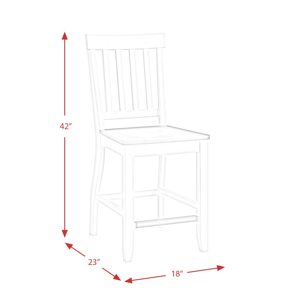 The Picket House Furnishings Jamison Counter Height Side Chair Set is the missing piece to your Jamison Dining Table! This duo comes with a wooden seat and a slat back, perfecting that cottage chic style. The chairs comes in a two-tone finish featuring a wire brush detail on the seat while the transitional off white covers the back and legs. Add this set to your dining room today to create the perfect transitional, cottage chic style. Features: Includes: Two (2) Counter Height Chairs Finish: Off White Material: Wood High slat back Cottage Chic Style Straight Legs Wire Brush Finish on Wooden Seat Specifications: Dining Chair Dimensions: 42″H x 18″W x 23″D ; (Back Height) 18″H Chair Weight: 33 lbs Seat Dimensions: 19″H x 8″W x 23″D Chair Weight Capacity: 300 lbs