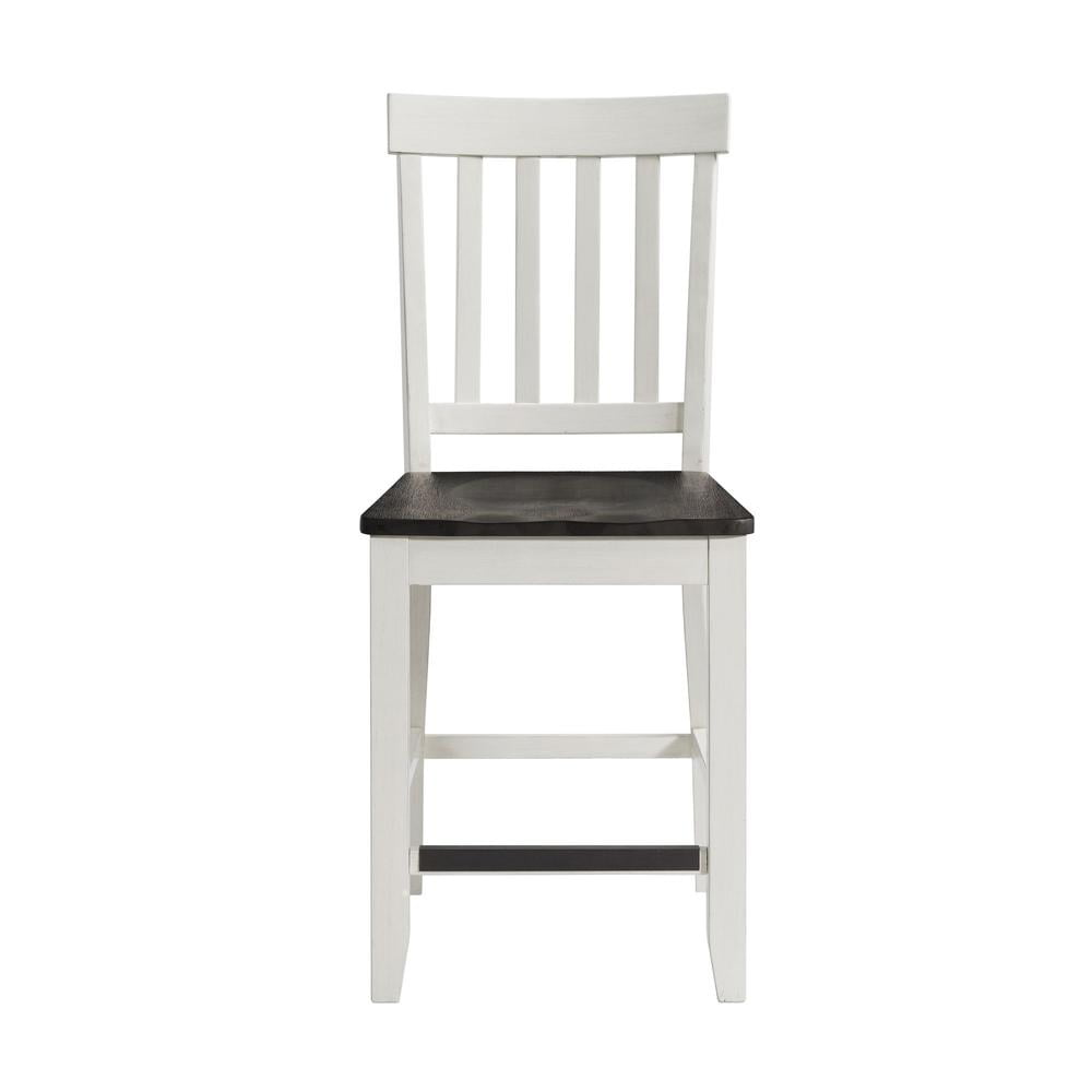 Includes: Two (2) Counter Height Chairs Finish: Off White Material: Wood High slat back Cottage Chic Style Straight Legs Wire Brush Finish on Wooden Seat