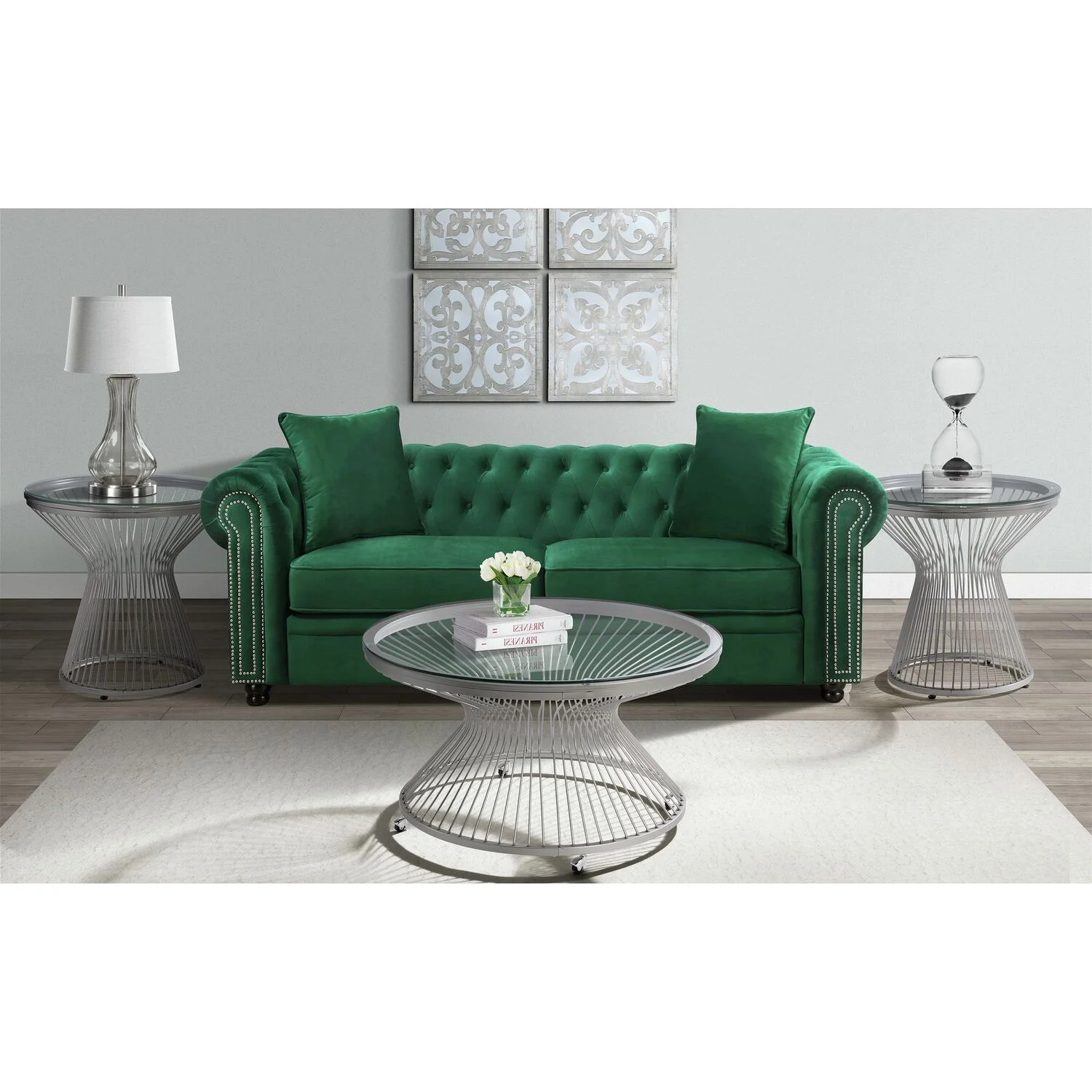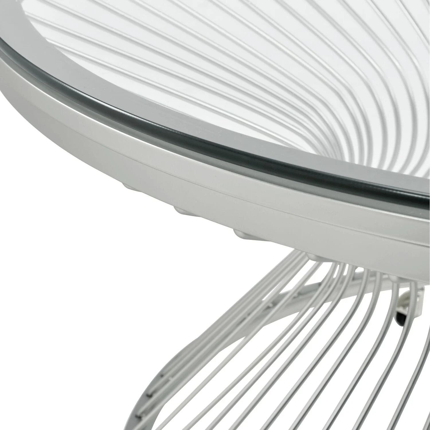 Round End Table Metal Table Base Tempered Glass Table Top Chrome Finish Modern Design Rubber Floor Protectors on Base