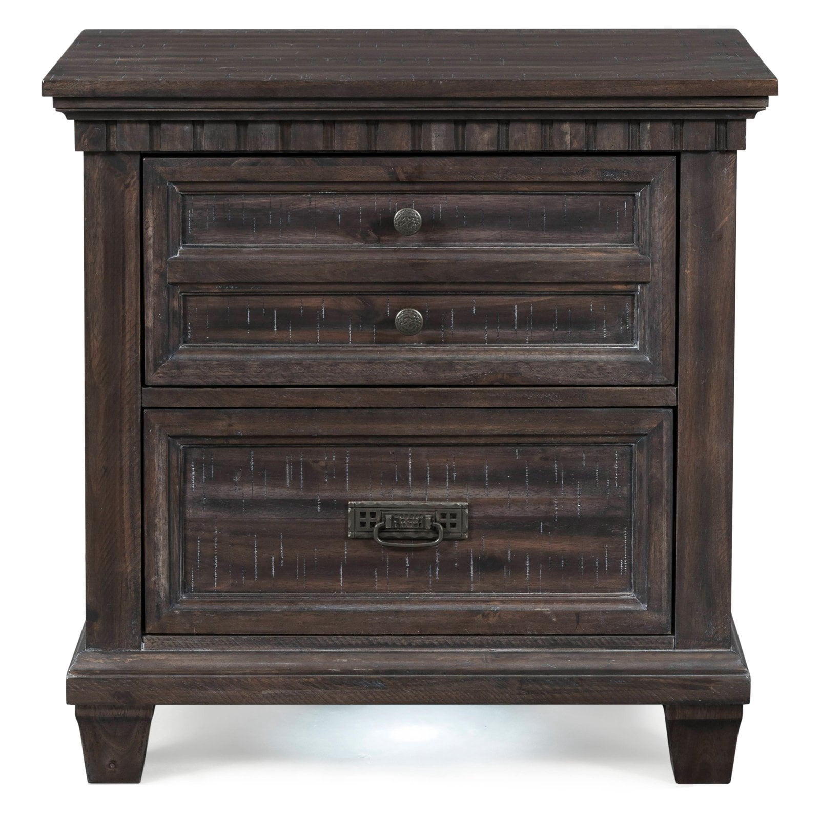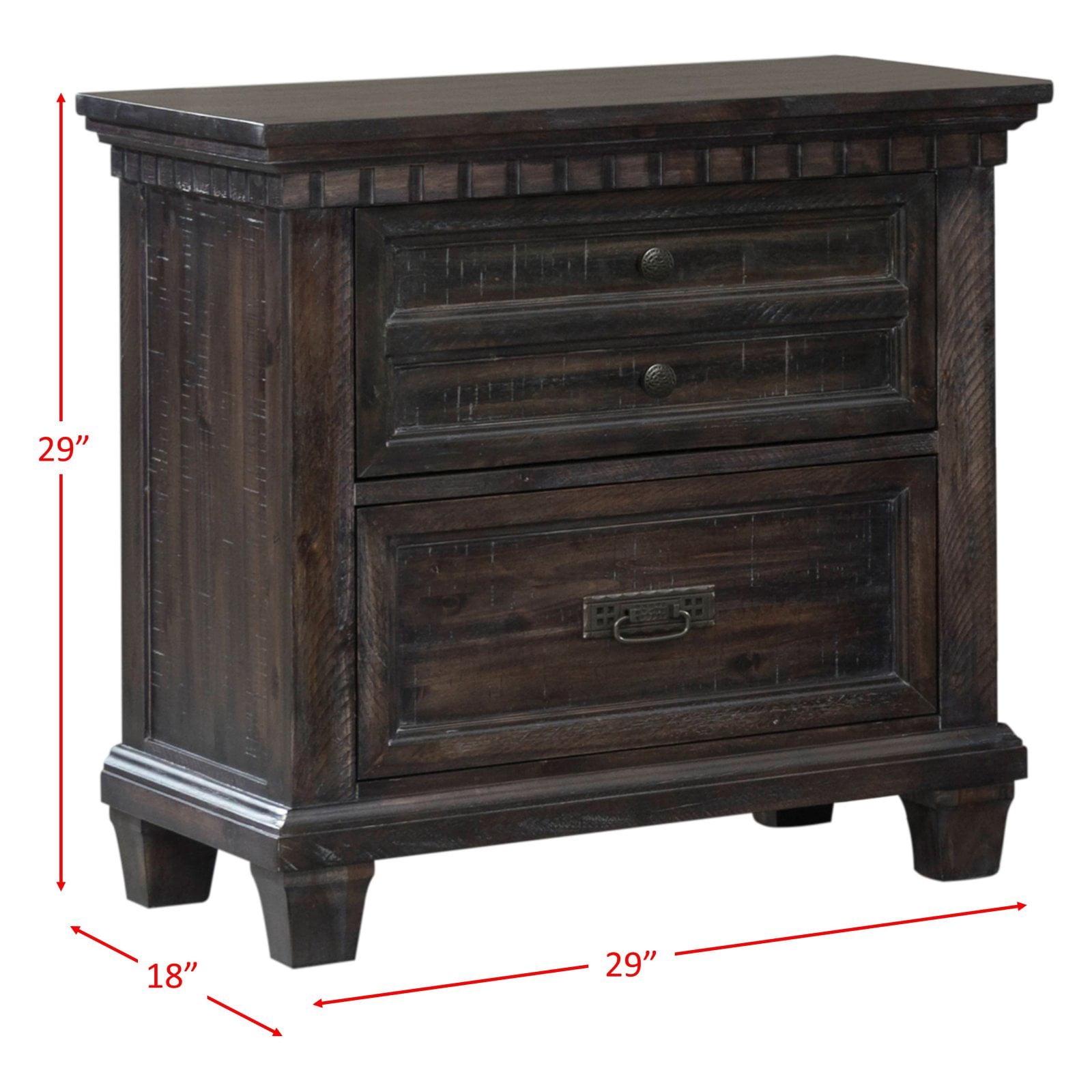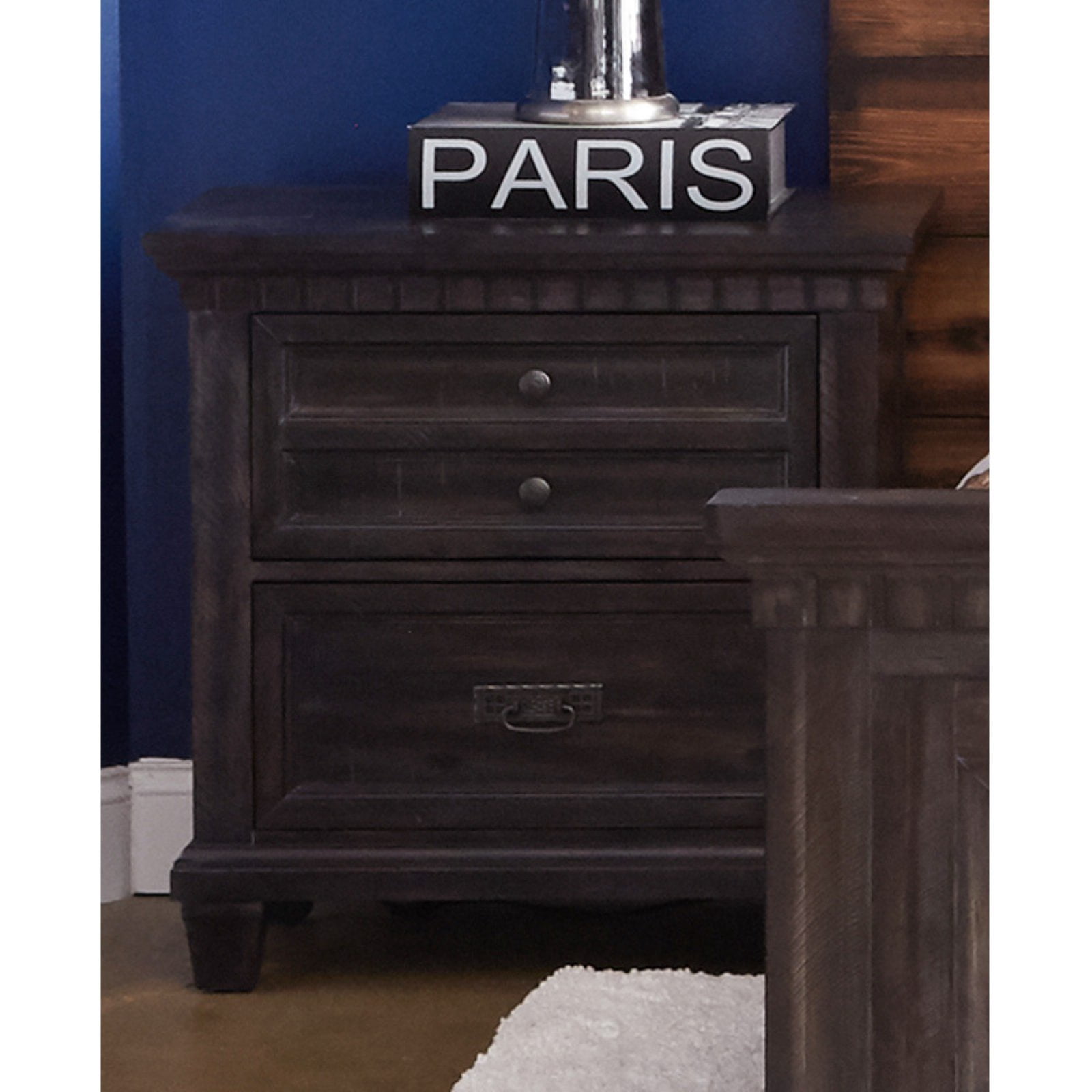 The Picket House Furnishings Steele 2-Drawer Nightstand is the perfect bedside table! This nightstand comes with two spacious drawers; perfect for keeping all of your bedside necessities within reach. The bedside staple features an LED light underneath to create a soft glow at the end of the day. Elegant oil rubbed bronze finished knobs and pulls pair nicely with the beautiful smokey walnut finished wood. Features: 2 Drawers 1 Hidden Drawer LED Light Underneath Nightstand Cedar Lined Bottom Drawers Hooded Tops Oil Rubbed Bronze Finished Knobs and Handles Specifications: Warranty: 1 Year Limited Manufacturer Warranty Assembly Required: Yes