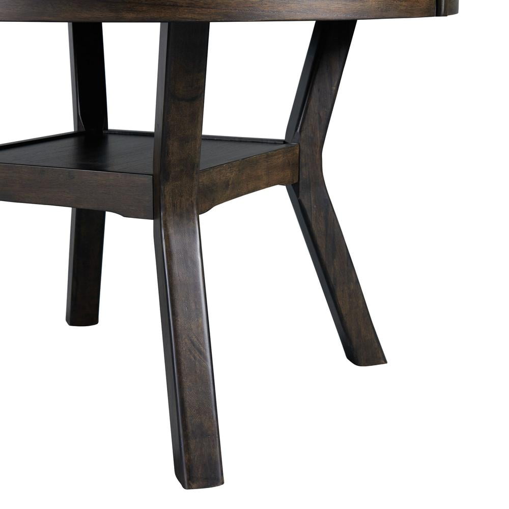 Round Table Top Standard Height Shelf in Table Base Dark, Walnut Finish Kicked-Out Legs Transitional Style
