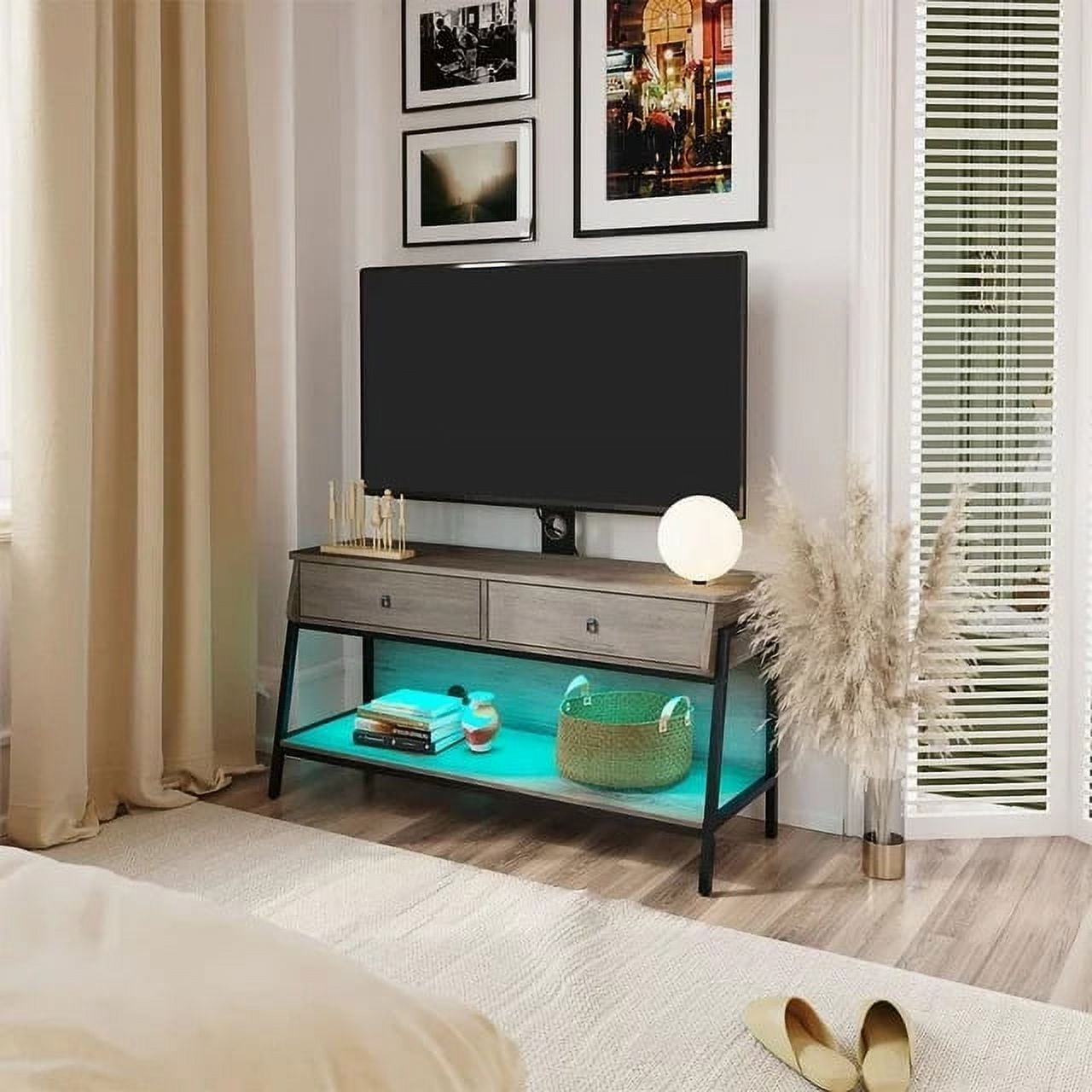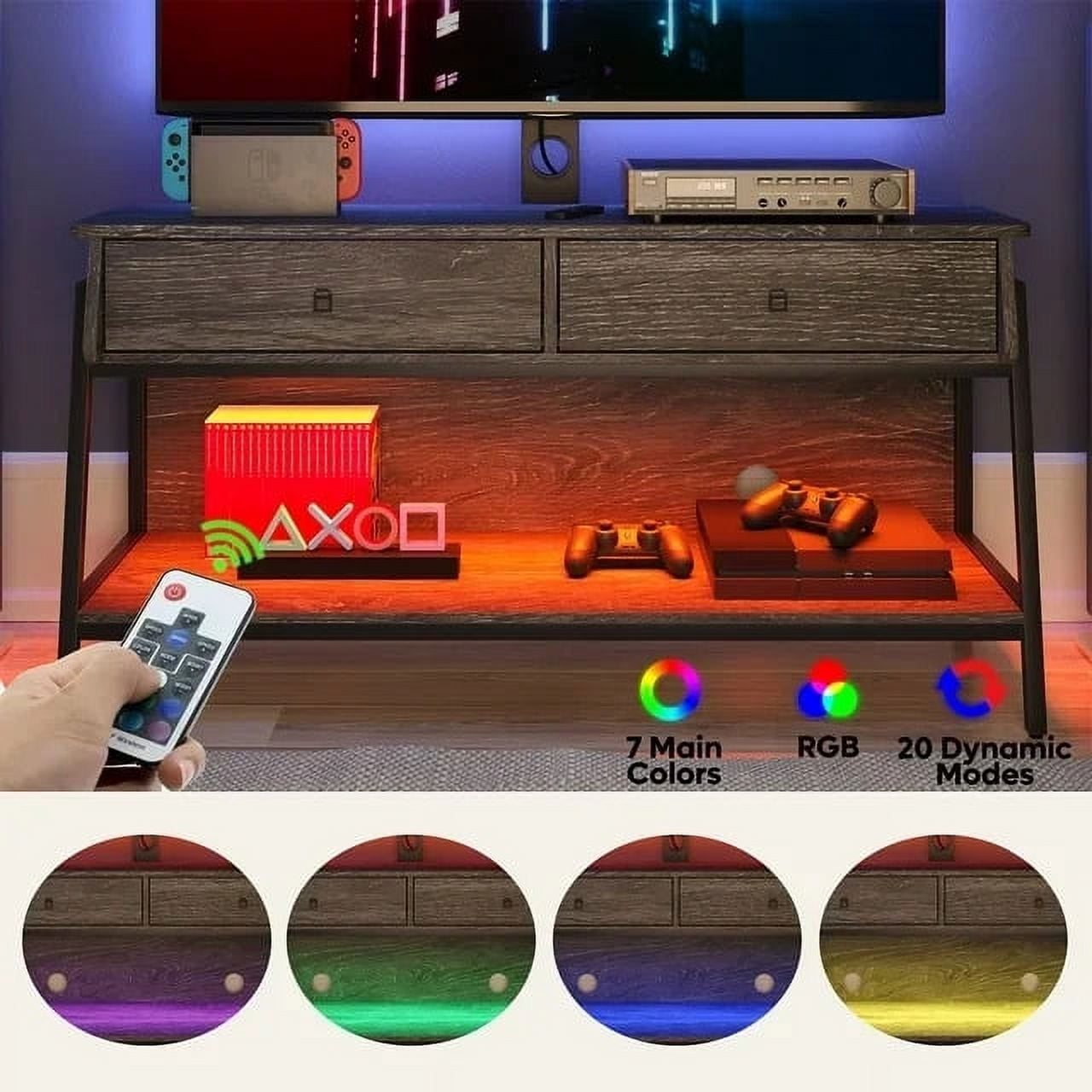 Pinmoco TV Stand with Adjustable Mount for 32-65″ TVs, LED Lights& Storage, Wash Grey RGB TV Console: Built-in remotely controllable LEDs with 7 main colors and 22 dynamic modes. Adjustable Mount: The mount can be used in conjunction with a TV stand or removed and used as a wall mount. Open Storage: 2 drawers for small items, easy to organize and access. Sturdy & Durable: Made of CARB certified P2 particle board, the media cabinet has greater stability and durability.sturdy trapezoidal-shaped with strong metal board frame ensures maximum durability and stability, bearing more than 100 lbs. Easy Assemble: Coming with labeled parts and illustrated instructions, it will help you put the office desk together easily. Explore More For Pinmoco Furniture Collection