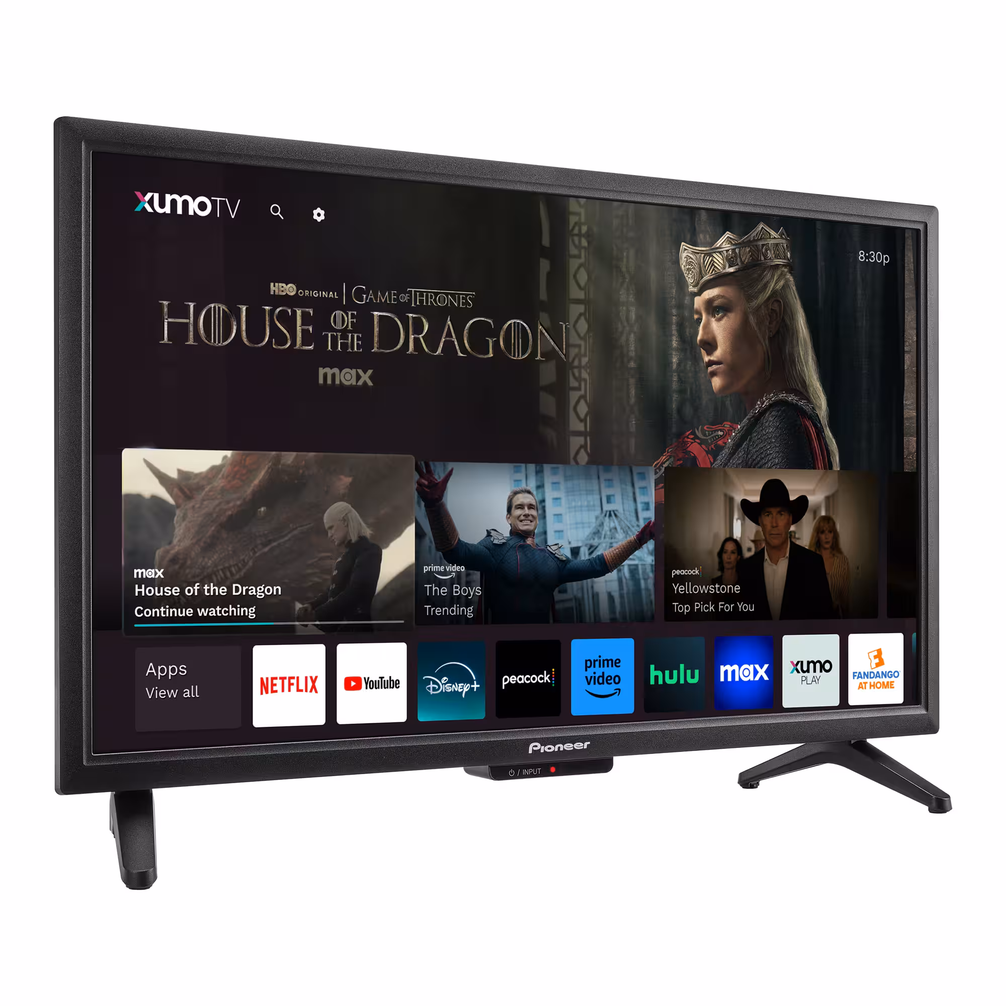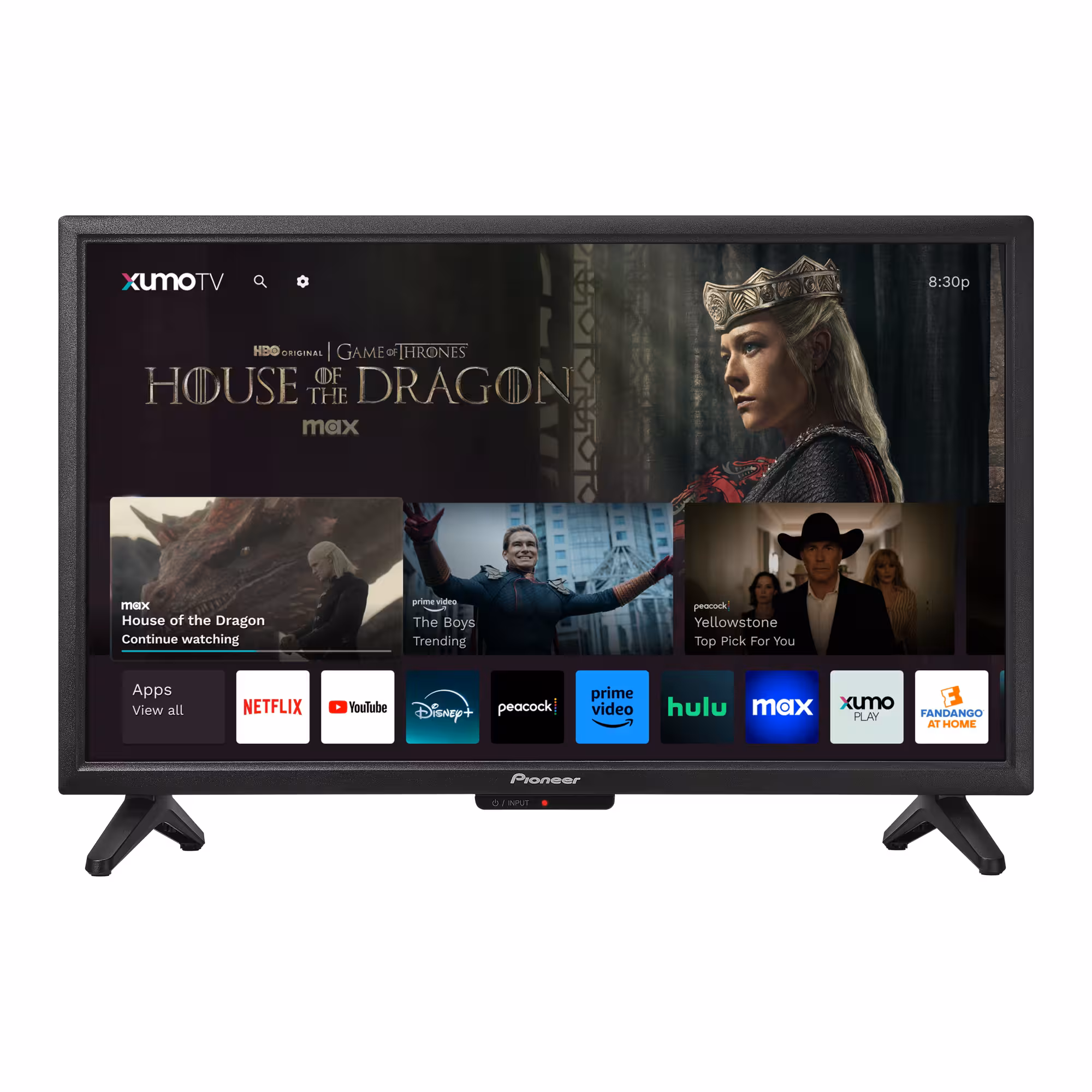 Enjoy stunning video with a Pioneer Xumo TV equipped with HD. Stream endless entertainment from over 250 streaming apps pre-loaded on your TV. Easily discover new shows and movies or launch your favorites from your personalized home screen. Curate a personal watchlist all in one place with My List, and search across hundreds of apps at once using your voice. Experience a whole new level of visual and audio entertainment with the Pioneer 24” Class LED HD Xumo Smart TV.