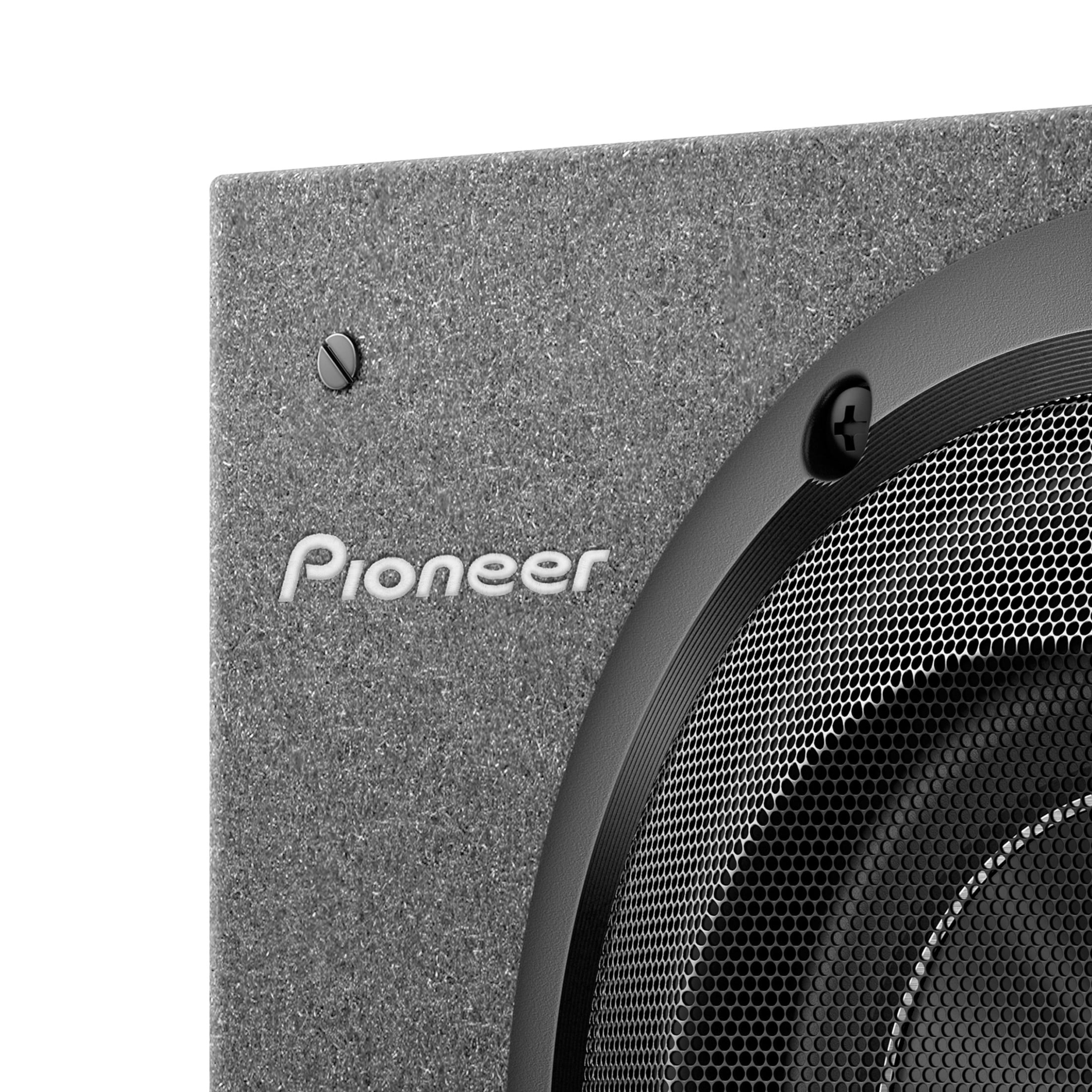 The Pioneer TS-A2000LB A-Series Shallow Mount Preloaded Enclosure has an 8 in. subwoofer already positioned inside. Traditional subwoofer terminals are mounted horizontally or vertically. These mounts force wires to be bent to fit which can be difficult if low -Gauge high performance wires are used. The Pioneer shallow subwoofers angled push terminals make it easy to connect speaker wires. The straighter connection saves space and makes installation easier. And compact, space-saving dimensions make it easy to install the preloaded subwoofer enclosure in the cabin or luggage area in a variety of trucks-standard cab, extended cab or crew cab.