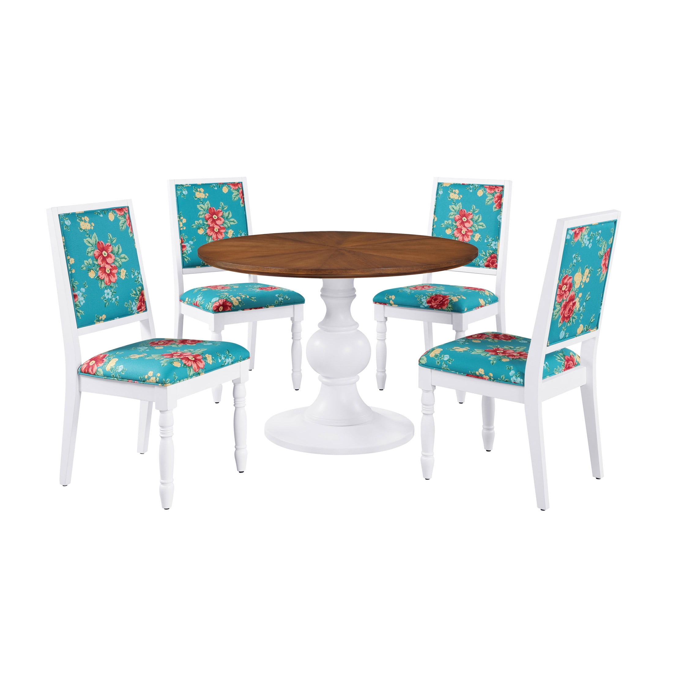 Add a touch of rustic charm to your home with the Pioneer Woman Callie Round Dining Table. Crafted from solid wood, this dining table is available in two stunning finishes: crisp white and warm homestead brown, ensuring it complements any decor style. Its spacious tabletop provides ample room for family meals, game nights, or casual get-togethers. Designed with a classic turned pedestal base, this table not only offers stability but also enhances its traditional farmhouse appeal. Ideal for dining rooms and kitchens, the Callie Round Dining Table comfortably seats four, making it perfect for small families or intimate gatherings. Fans of the Pioneer Woman will appreciate the blend of style and functionality that this table brings to their homes. Meet Ree: Ree Drummond is a NY Times Best Selling Author, TV personality, social media phenom, and the woman behind the popular Pioneer Woman lifestyle blog that started it all. She’s also a lover of butter, basset hounds, Ethel Merman, her hunky, cowboy husband Ladd, and their four kids. Her casual country style and delicious recipes have made her a go-to for all things cooking and entertaining.