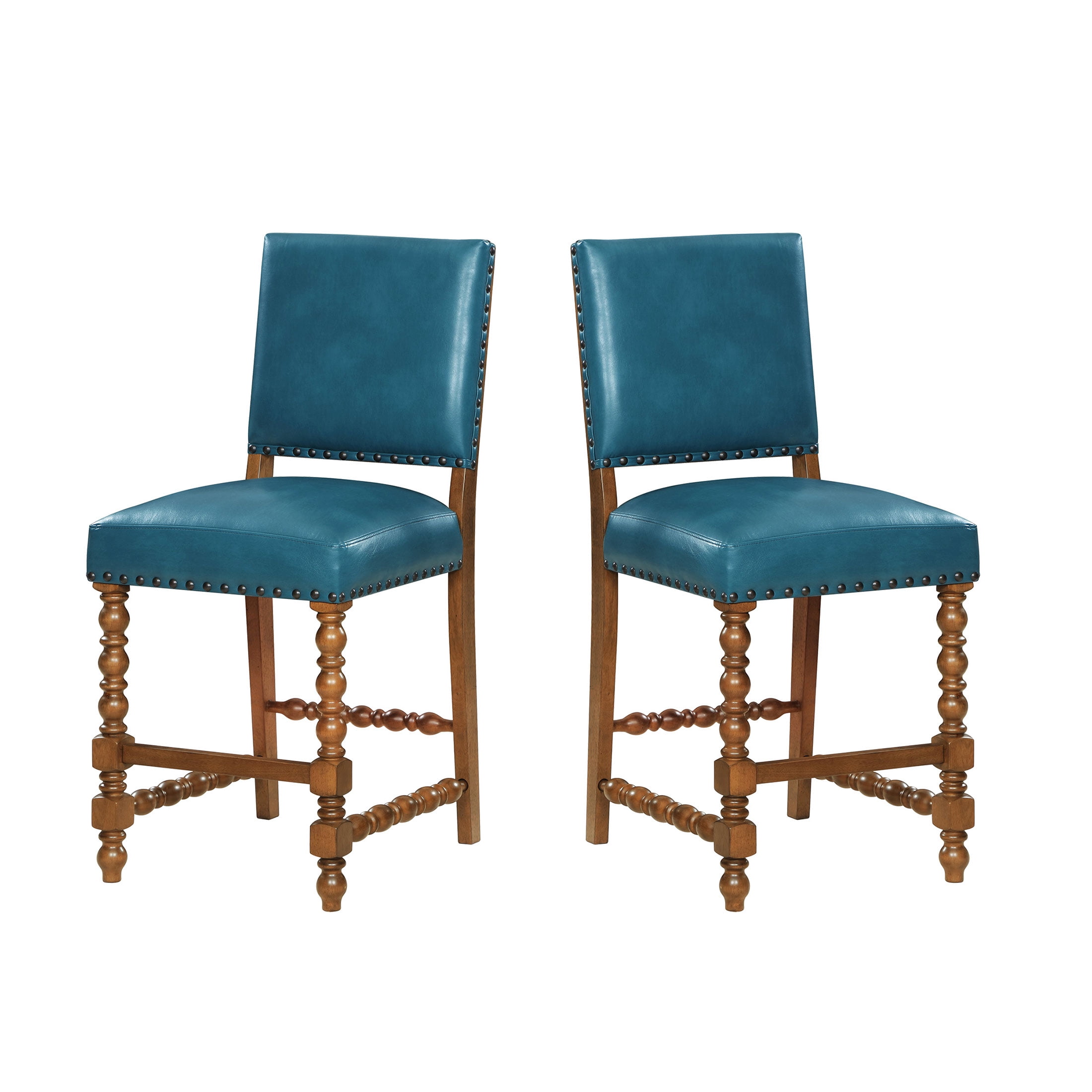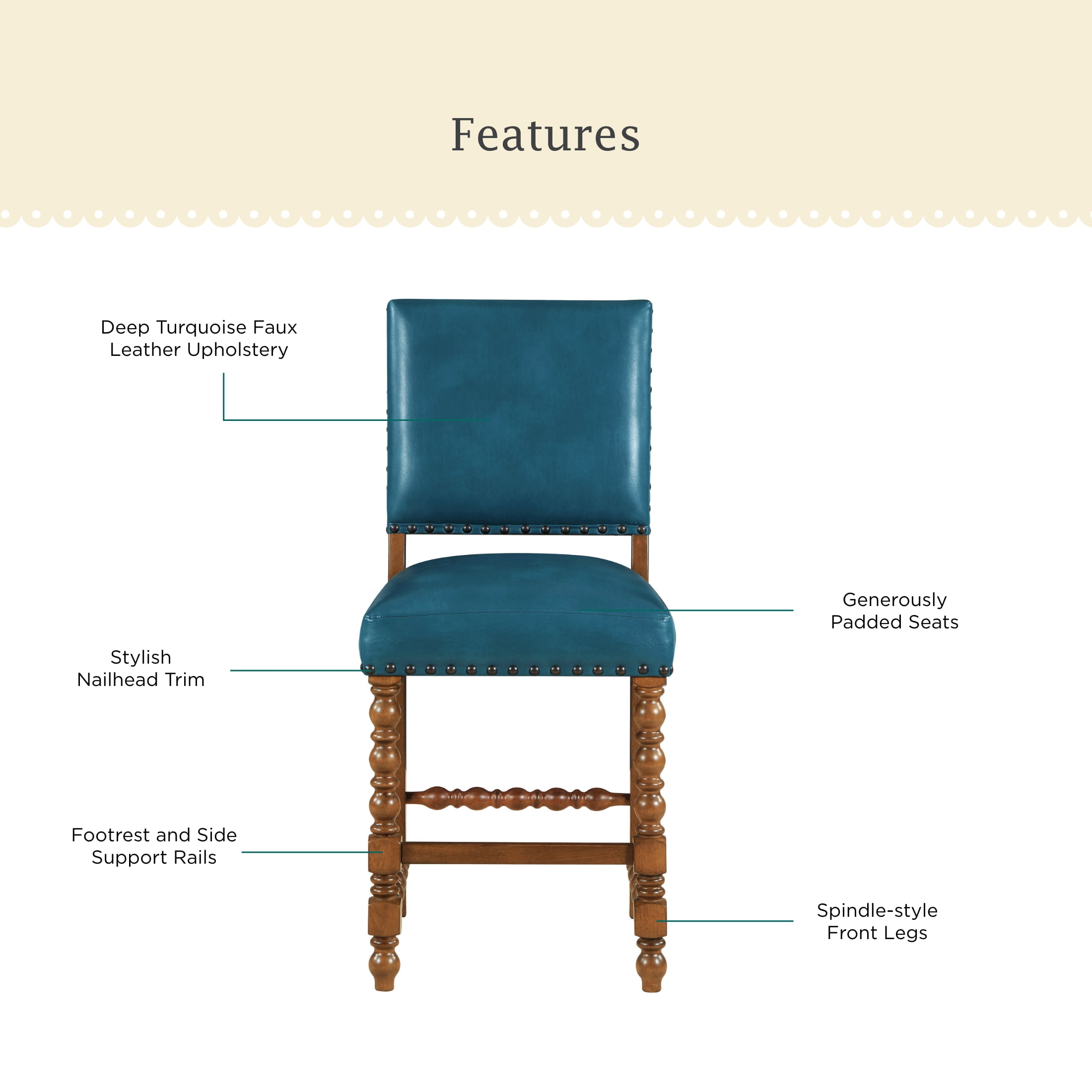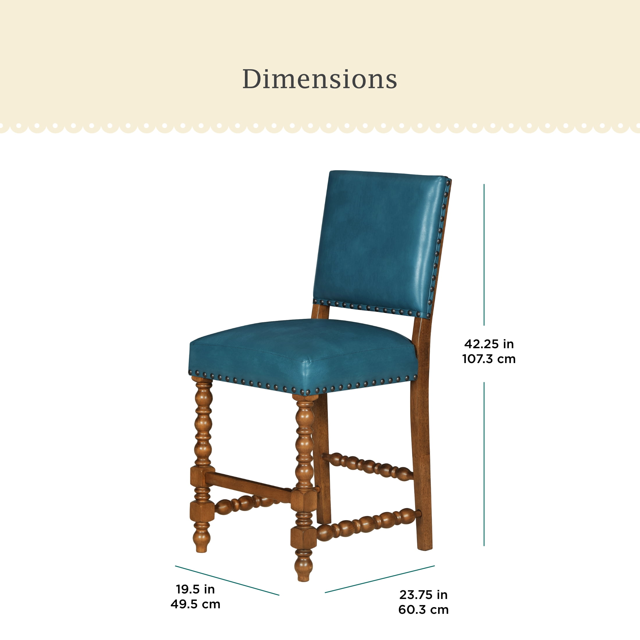 Set of 2 Stools: Perfect for dining rooms or kitchen areas Deep Turquoise Faux Leather Upholstery: Adds vibrant color and elegance Solid Wood Construction: Ensures durability and longevity Generously Padded Seats: Provides superior comfort for dining and socializing Stylish Nailhead Trim: Enhances the traditional farmhouse aesthetic Pairs Well with Pioneer Woman Kitchen Island: Completes your kitchen or dining area look Easy to Assemble: Hassle-free setup so you can enjoy your new stools quickly Product Dimensions: 19.5 IN W x 23.75 IN D x 42.25 IN H (49.5 CM x 60.3 CM x 107.3 CM) Product Weight: 55.1 lb Packaging Dimensions: 44.375 IN x 21.25 IN x 16.25 IN Packaging Weight: 50.9 lb (23.1 kg) Model# PW1425004710042