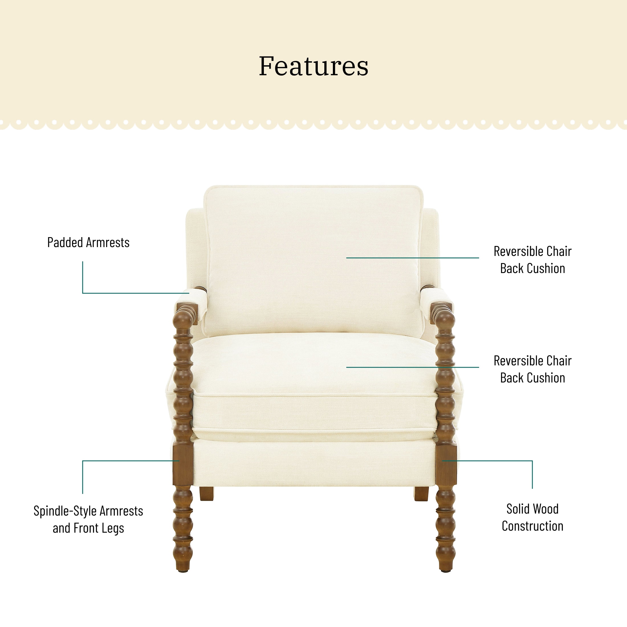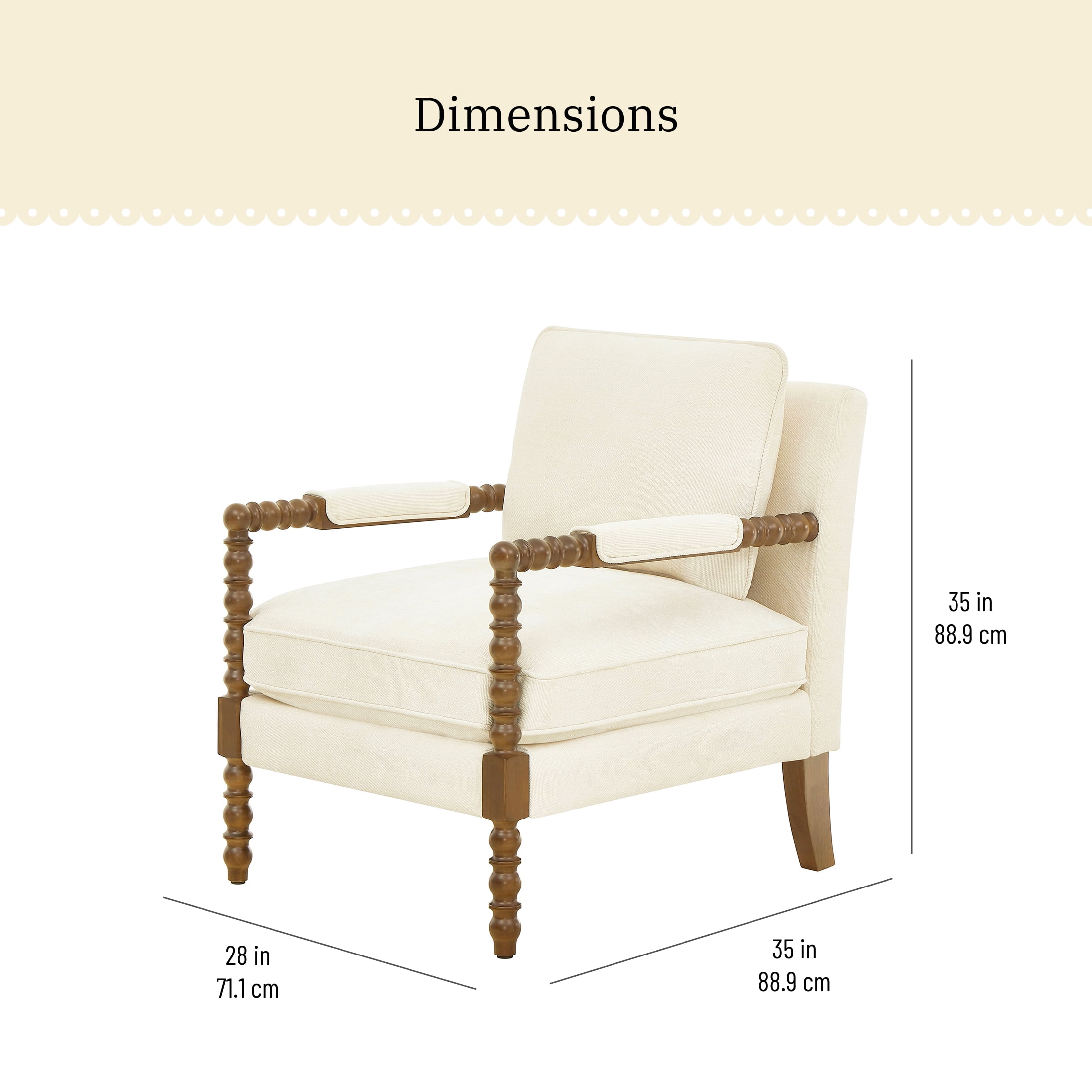 Pioneer Woman Harper Spindle Accent Chair, Antique White Fabric Upholstery