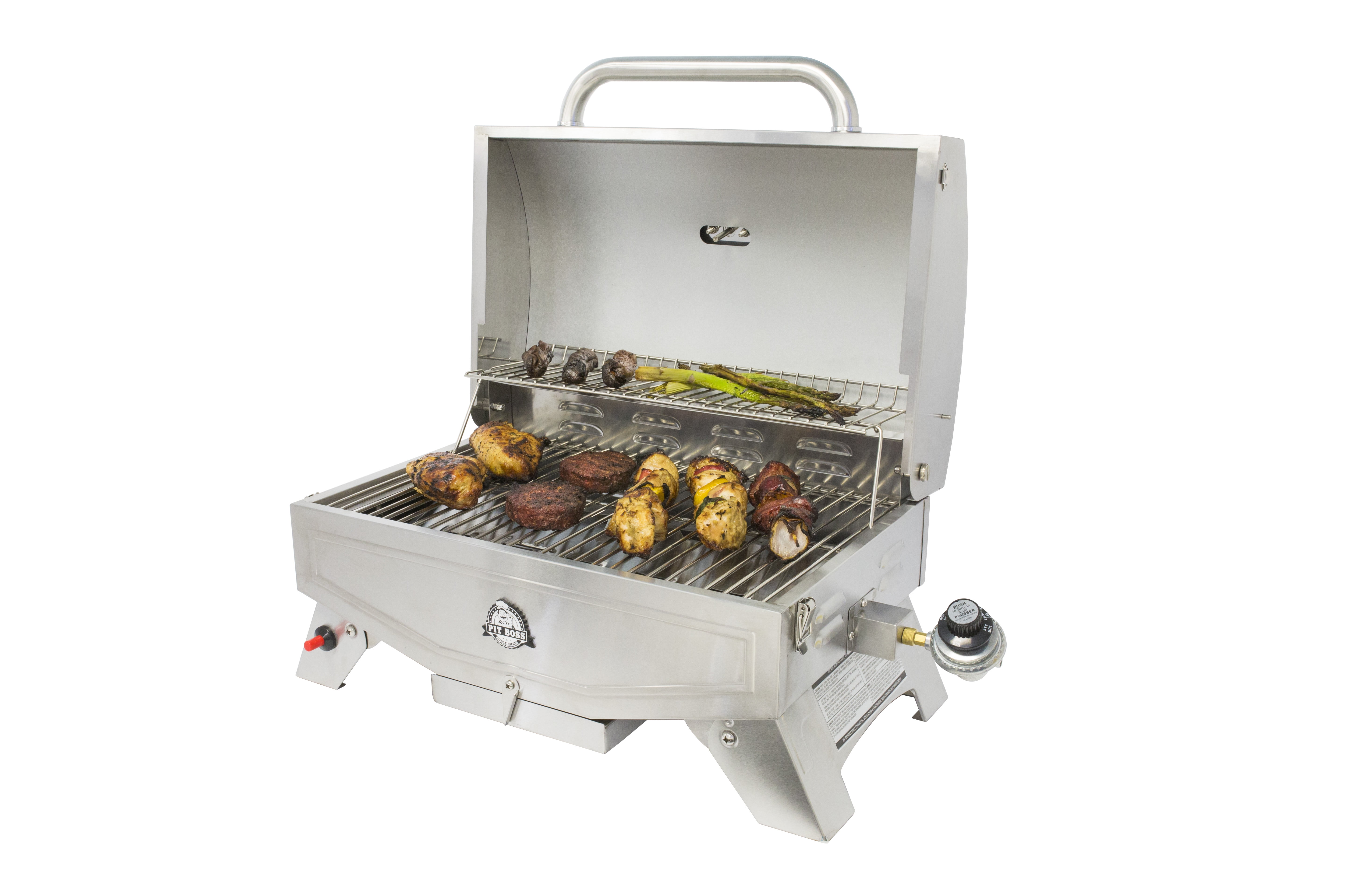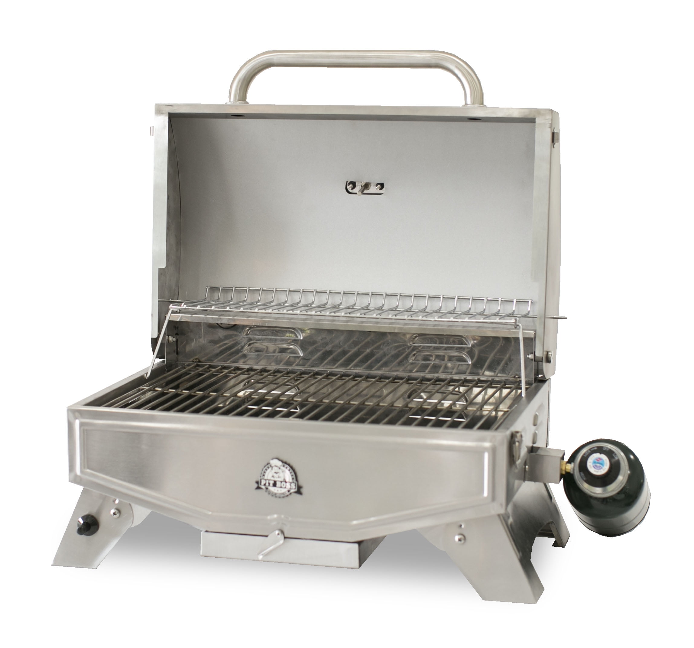 From Bigger, hotter, and heavier at home Pit Boss grills to the heavy-duty and reliable camp grills, Pit Boss has you covered. Made from Stainless steel. The pit stop by Pit Boss allows you to take your BBQ on the road, or anywhere travel takes you. Our 274 Sq. in., the cooking surface is large enough for camping, tailgating, picnics, and backyard enjoyment. The easy-to-use push-button ignition and lower grease tray make it easy to wipe away grease with little effort. The folding legs allow you to collapse and store in a truck bed or car trunk. The Pit Boss Stop has a stainless steel body, hood, cooking grids, and flame tamer. Grilling up your favorite recipes just got easier with this dependable pit stop by Pit Boss grills.