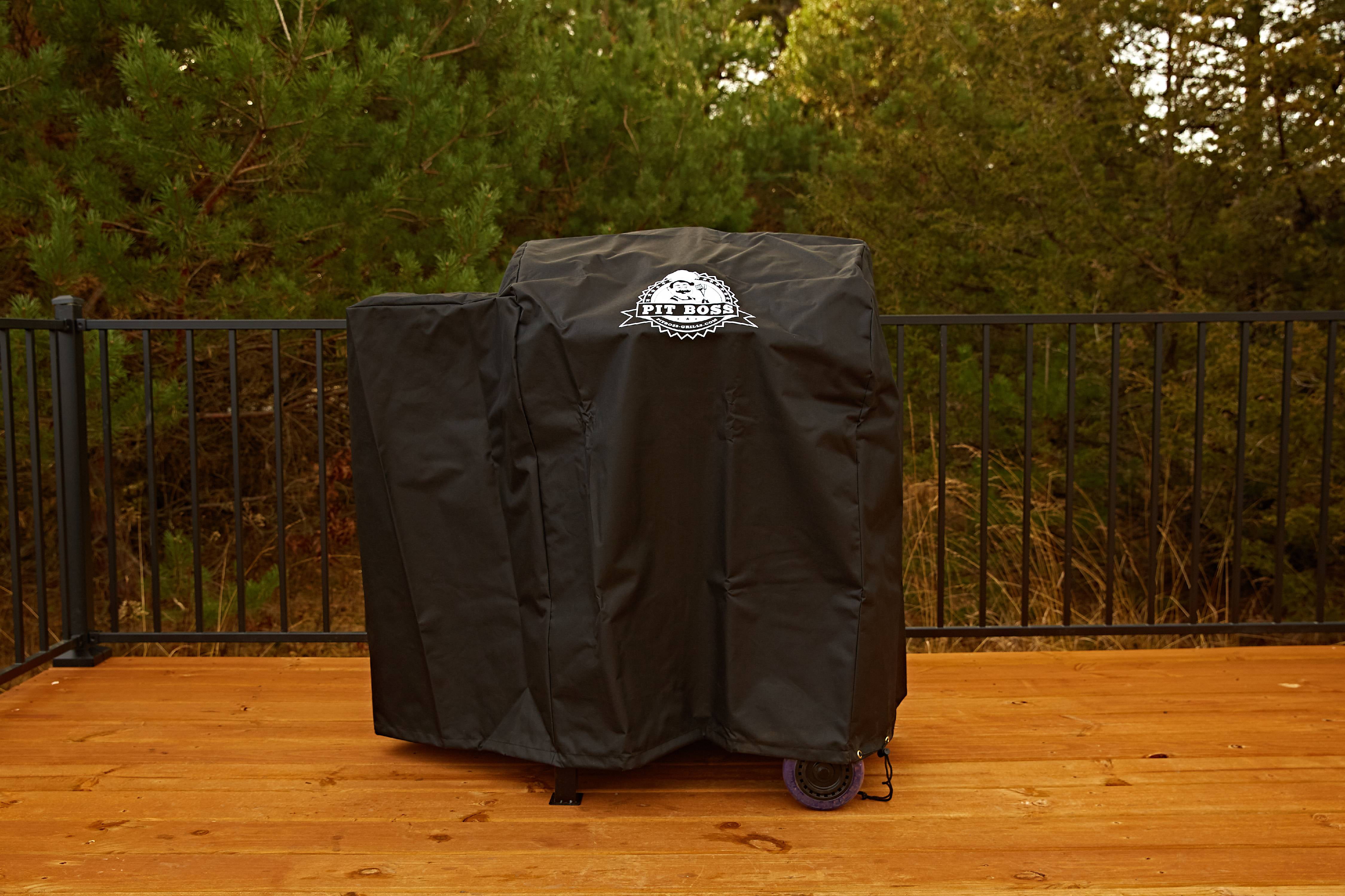 Pit Boss Smoker Cover for 700FB Pellet Grill Drawstring to ensure a secure fit Material: Polyester and PVC Net Weight: 12 oz. Note: Allow your Pit Boss Grill to cool before covering. To clean the Pit Boss Grill cover is easy, wash with water and the dirt comes right off, or clean with a damp cloth and mild detergent. Resists UV Repels rain Resists tears Grill cover is made of heavy duty polyester and PB backing fabric Builds to last through all seasons, makes your grill life longer.