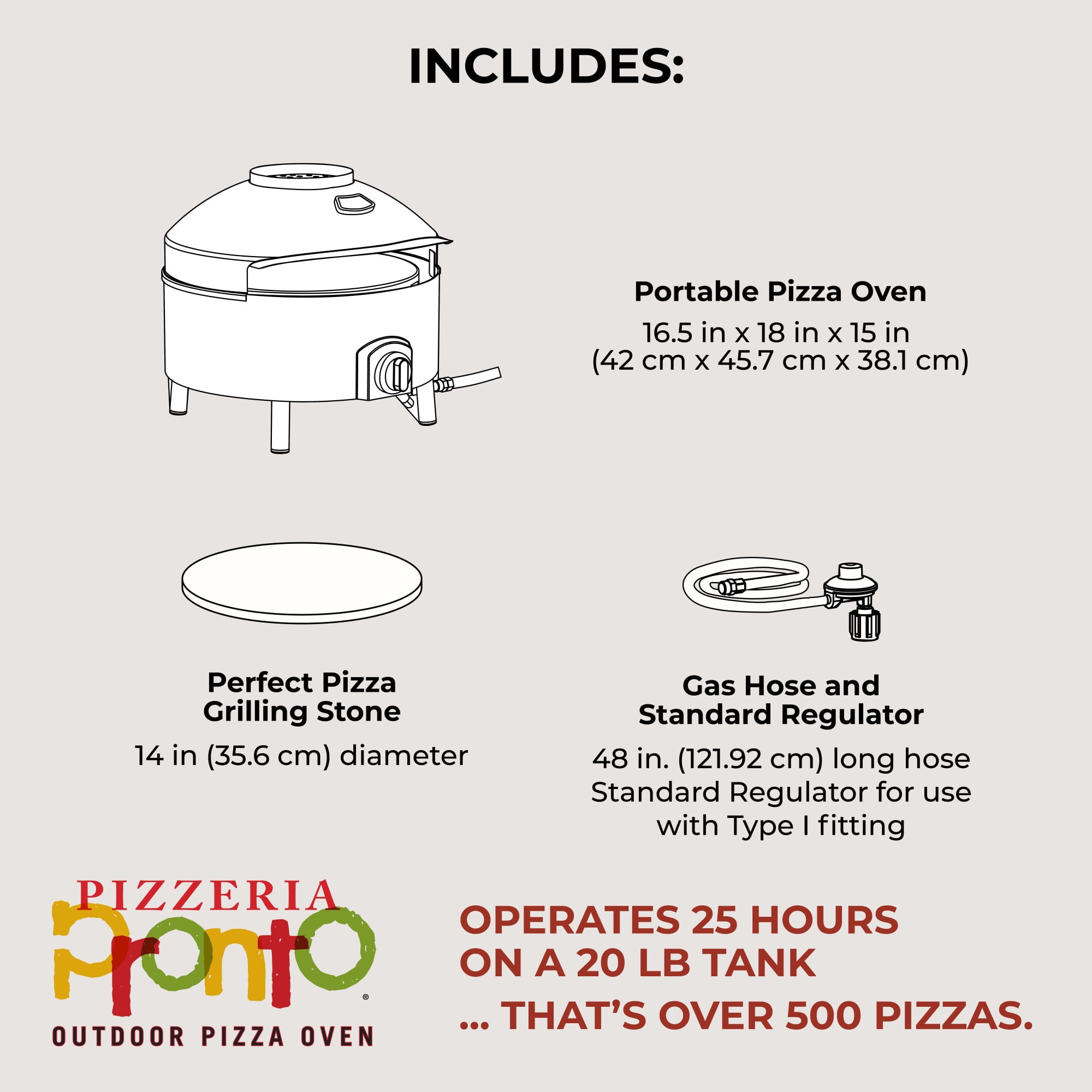 Pizzacraft Pizzeria Pronto Outdoor Pizza Oven – Lightweight, Portable Measures L 19.50 Inch x H 12.20 Inch x D 18.70 Inch Reaches cooking temperatures of 700F Preheats in only 10 minutes Cooks a pizza in 5 minutes and is immediately ready for another pizza Incredibly portable and perfect for tailgating, camping, and picnics