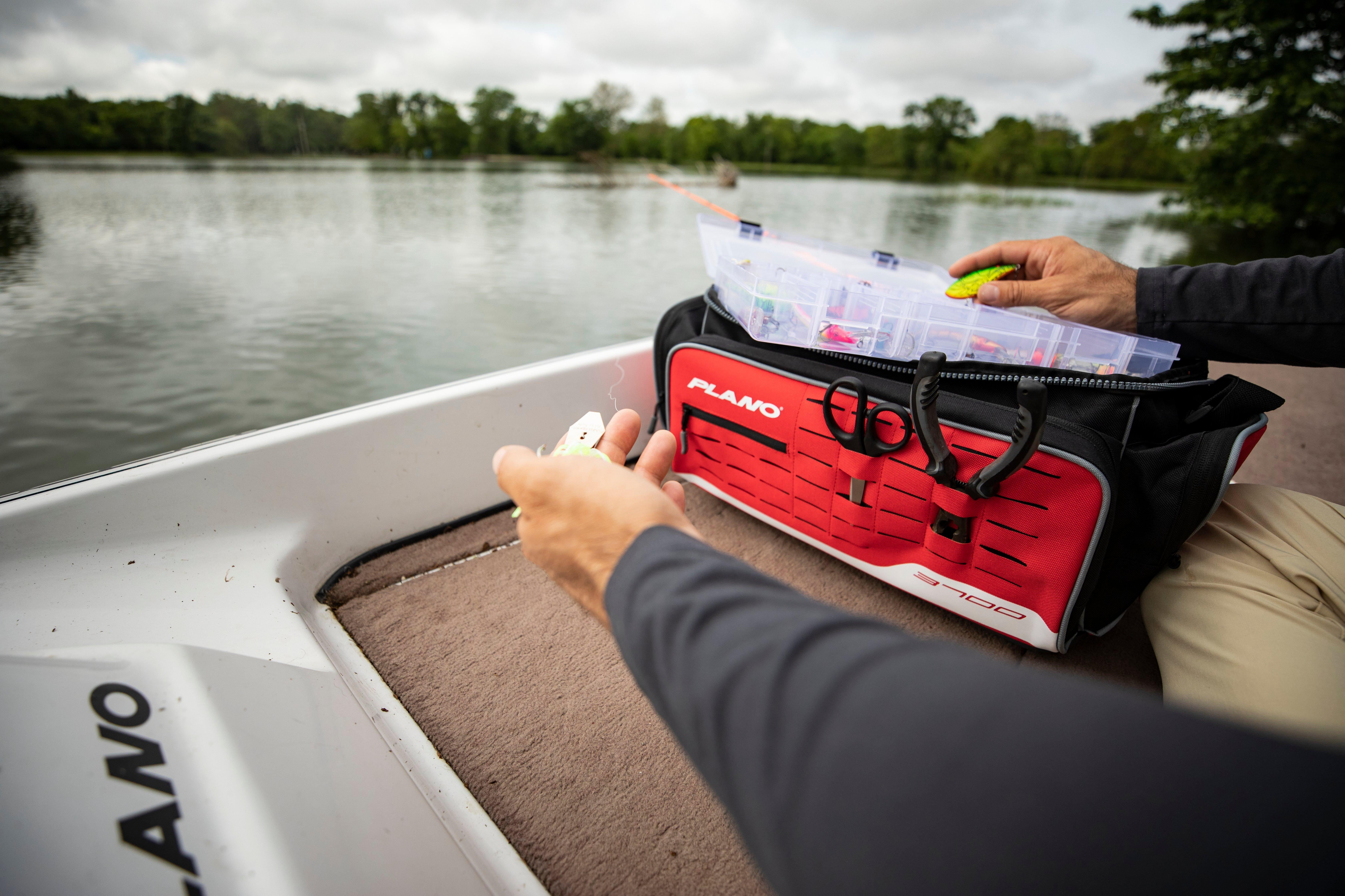 Weekend Series 3700 Deluxe Tackle CaseThe Plano Weekend Series Tackle Cases and Deluxe Tackle Case are focused on the casual angler. The Weekend Series Provides affordable tackle and gear storage options. No matter where you live or what you like to fish, organize with ease so you can focus on the stuff that really matters.The 3500, 3600, and 3700 Tackle Cases come with two StowAway boxes to store lures, hardware and terminal tackle. The StowAways are easy to access with oversized molded zippers that are durable and easy to grab. Every angler needs specialty tools, which is why a front MOLLE panel is included to attach the essentials. Mesh side pockets provide room for extras or items that can get wet and need to dry.The Plano Deluxe Tackle Case has updated zipper pulls, allowing anglers to open the case without looking. The Deluxe models are available in 3600 and 3700 models compatible with the StowAway boxes. Two StowAways come with each case. Additional upgrades include laser-cut MOLLE attachment points, two additional slash pockets perfect for your phone or wallet and an upgraded molded base that provides extra protection and keeps your contents dry if your bag is sitting on a wet streambank or boat deck.Whether hunting for your first tackle storage system, or upgrading to accommodate more gear, the Weekend Series is a smart and affordable choice to store and organize tackle and maximize quality fishing time. Molded waterproof base,Oversized molded zippers for durability,Front MOLLE panel for tool storage,Zippered front, side and top panel pockets,Updated Plano Zipper Pulls,Includes (2) Stowaways,Available in 3600, 3700 sizes,